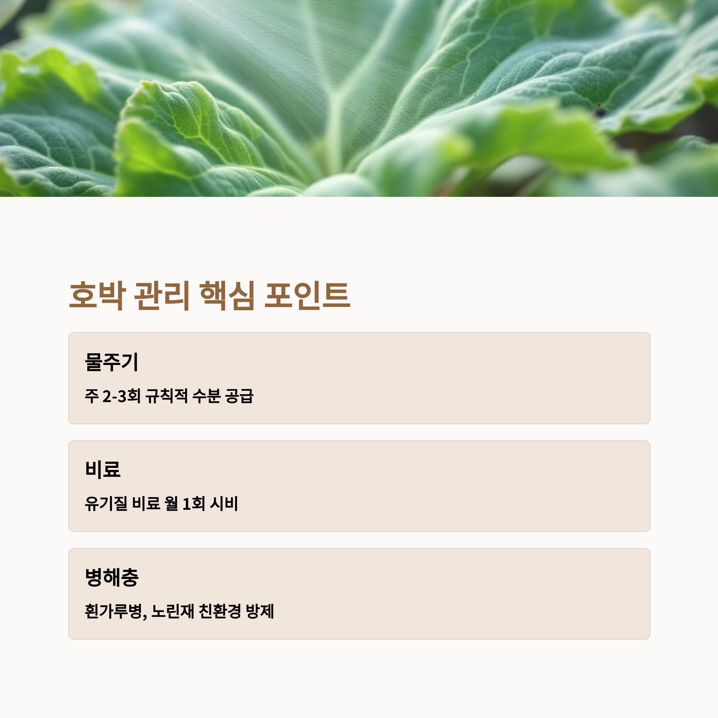호박을 잘 키우려면 물, 비료, 덩굴 관리에 세심한 주의가 필요해요. 계절별로 나눠 상세히 설명할게요.