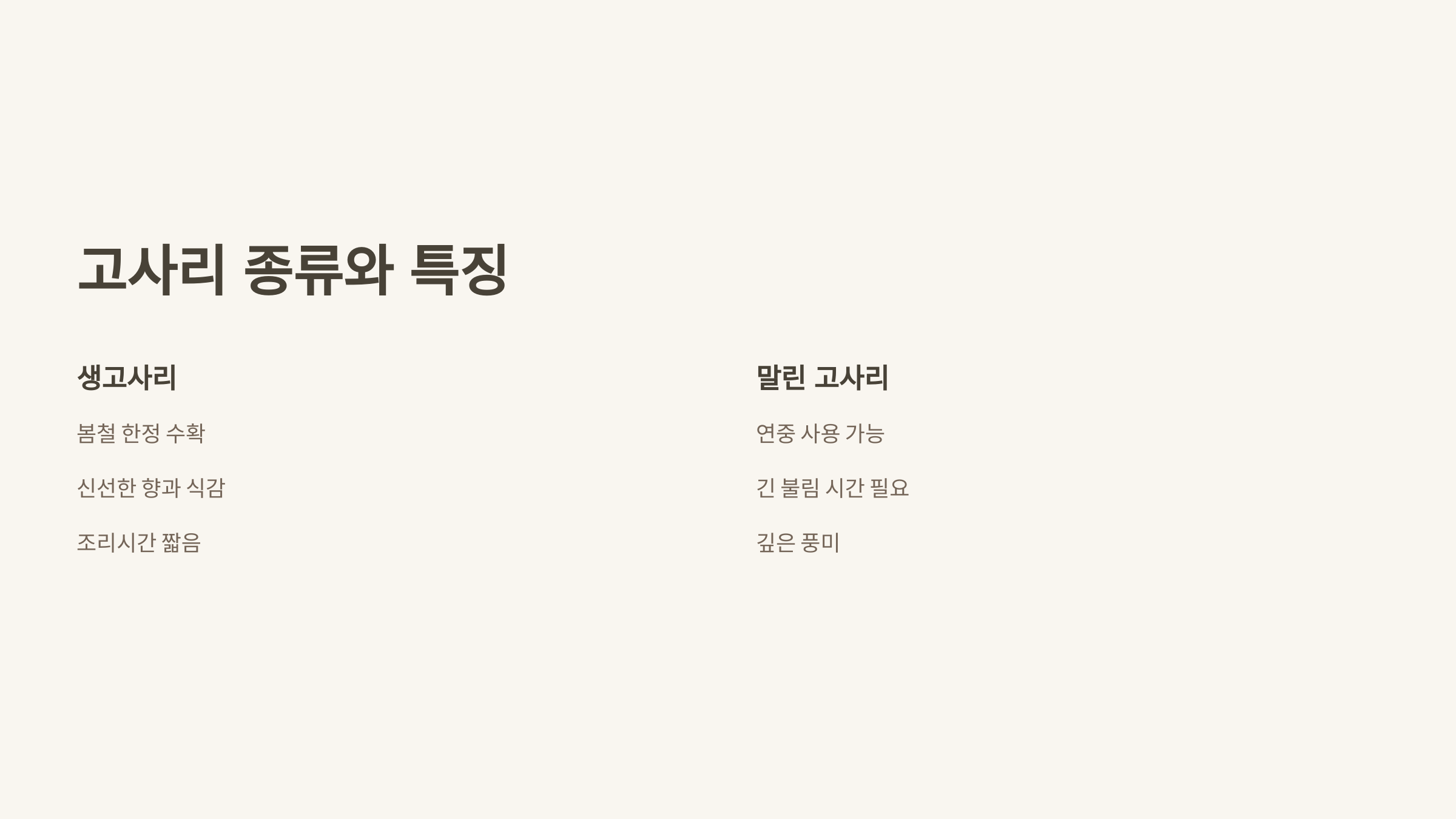 말린 고사리 연중 사용 가능, 긴 불림 시간 필요, 깊은 풍미