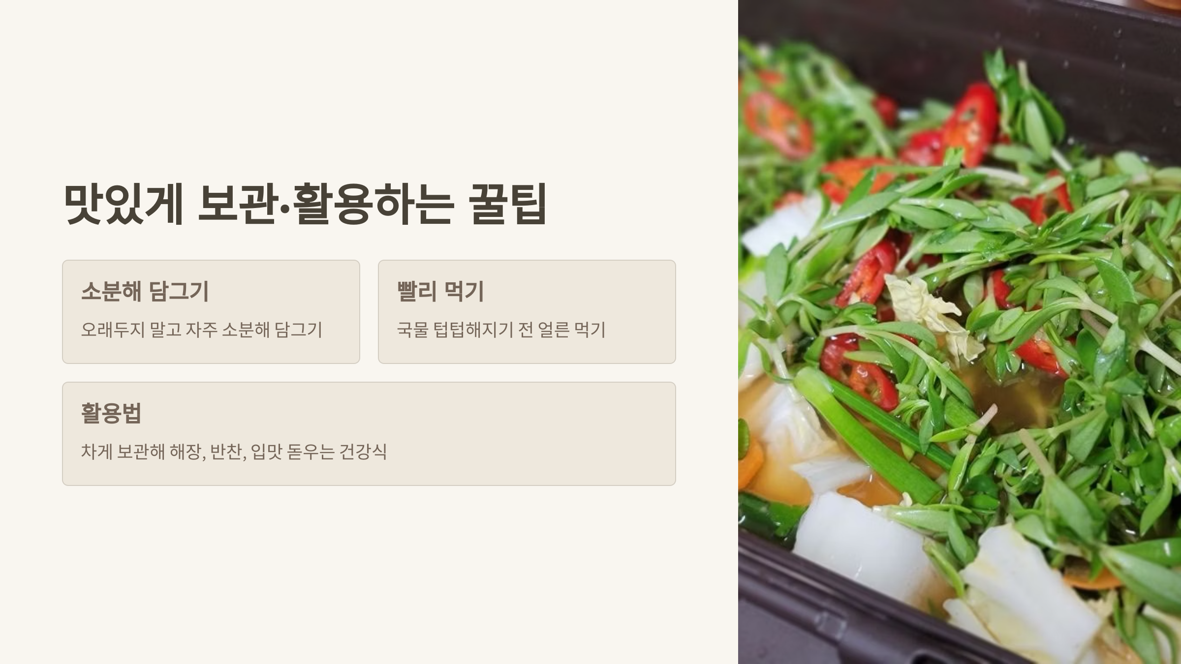 돌나물 물김치는 그냥 반찬으로 먹어도 좋지만, 다양하게 활용할 수 있습니다: