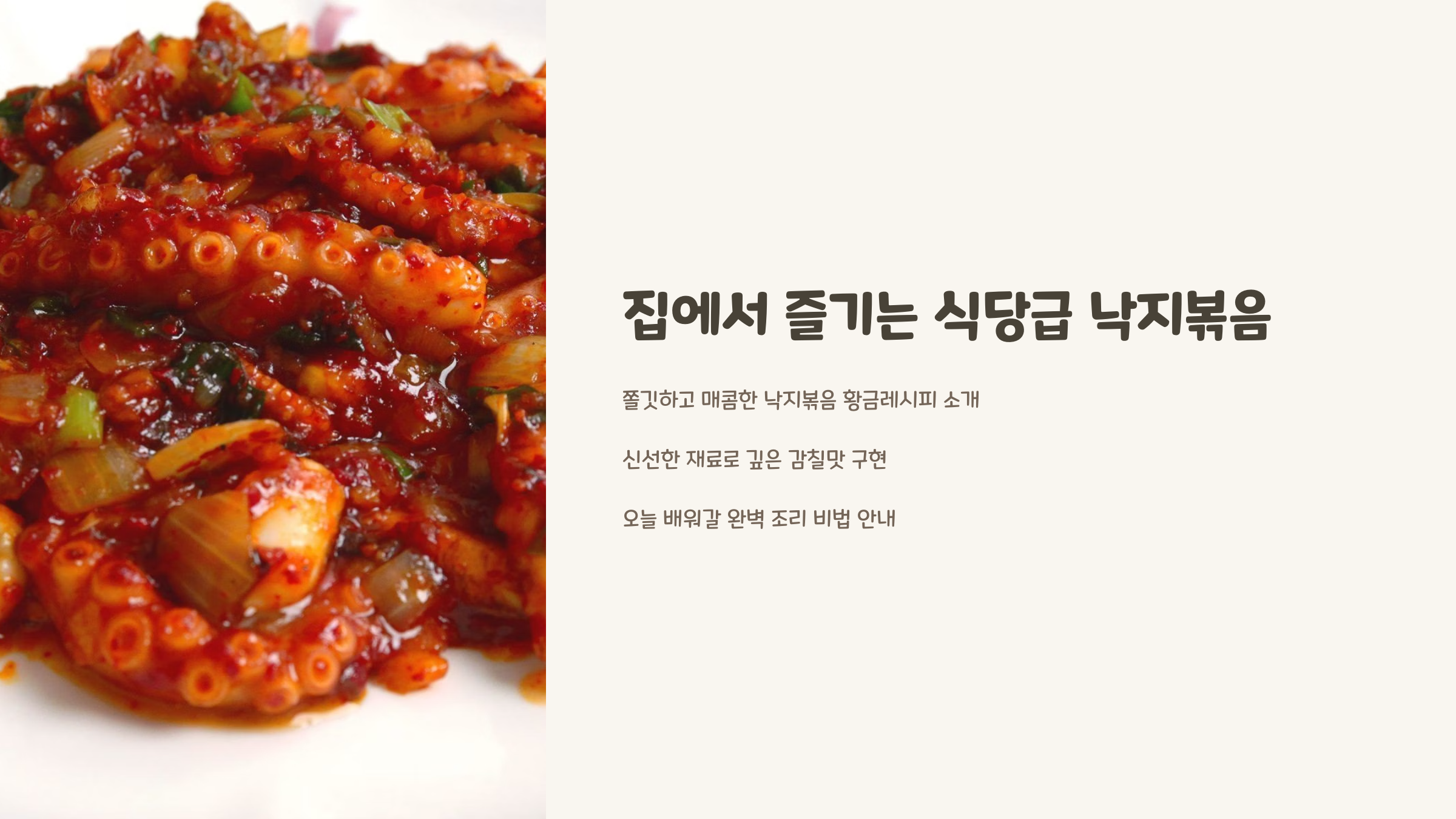 집에서도 식당보다 맛있는 낙지볶음을 만들고 싶으신가요? 오늘은 낙지볶음 황금레시피를 통해 쫄깃한 식감과 매콤한 맛의 조화를 이루는 완벽한 낙지볶음 만드는 방법을 알려드립니다. 신선한 낙지 고르는 법부터 손질법, 비법 양념까지 모두 알려드릴게요!