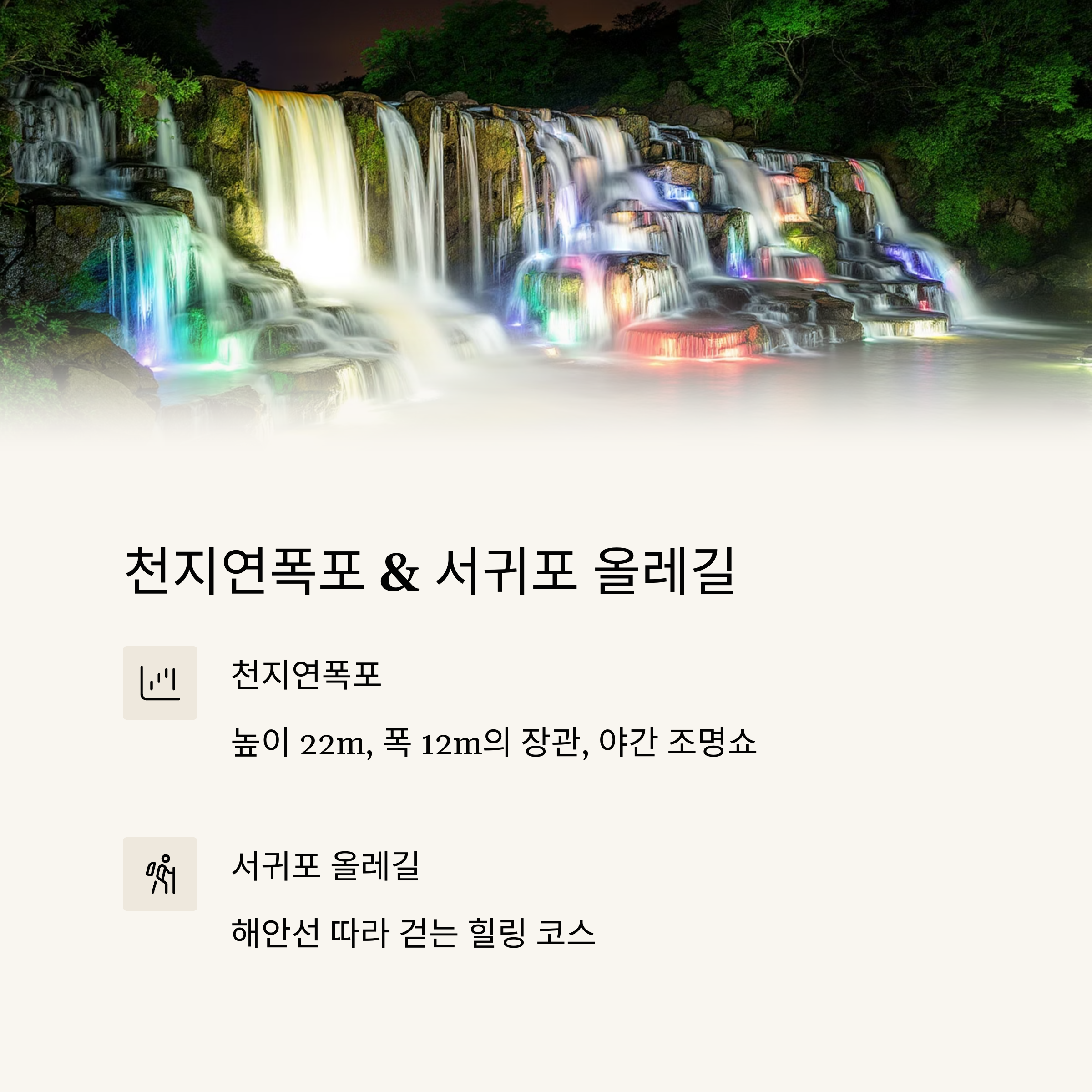 제주도 가볼만한곳 중에서 여유로운 트레킹을 원한다면 서귀포 일대의 올레길이 제격입니다. 특히 7번, 8번 코스는 해안가를 따라 이어지는 아름다운 경치로 인기가 높습니다. 제주 사람들의 평범한 일상과 함께 바다, 오름, 마을을 모두 경험할 수 있는 올레길은 진정한 제주도의 매력을 발견하게 해줍니다.