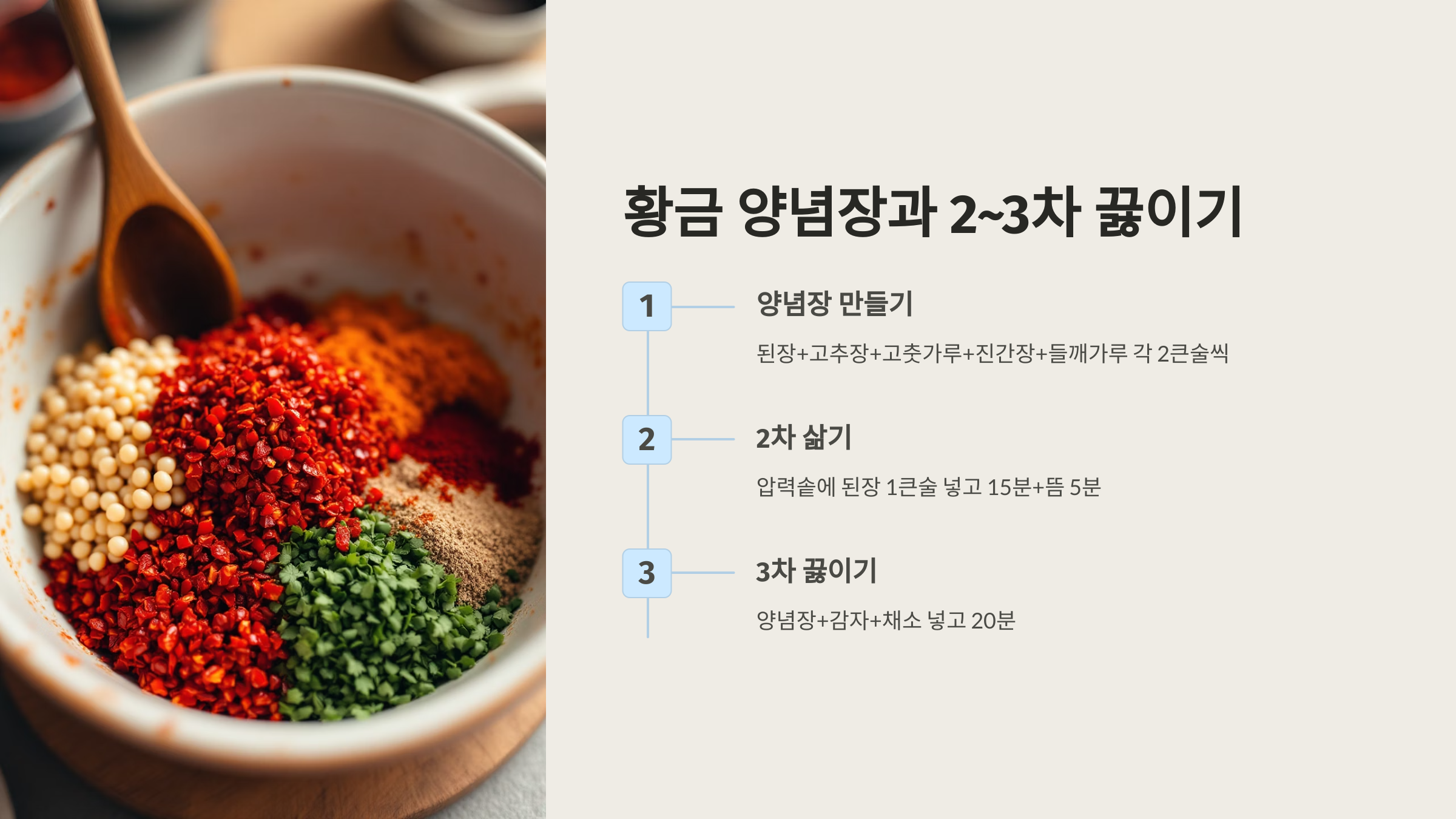 감자탕의 깊은 맛을 결정짓는 양념장을 만들어 봅시다. 이 양념장이 감자탕 황금레시피의 핵심입니다!