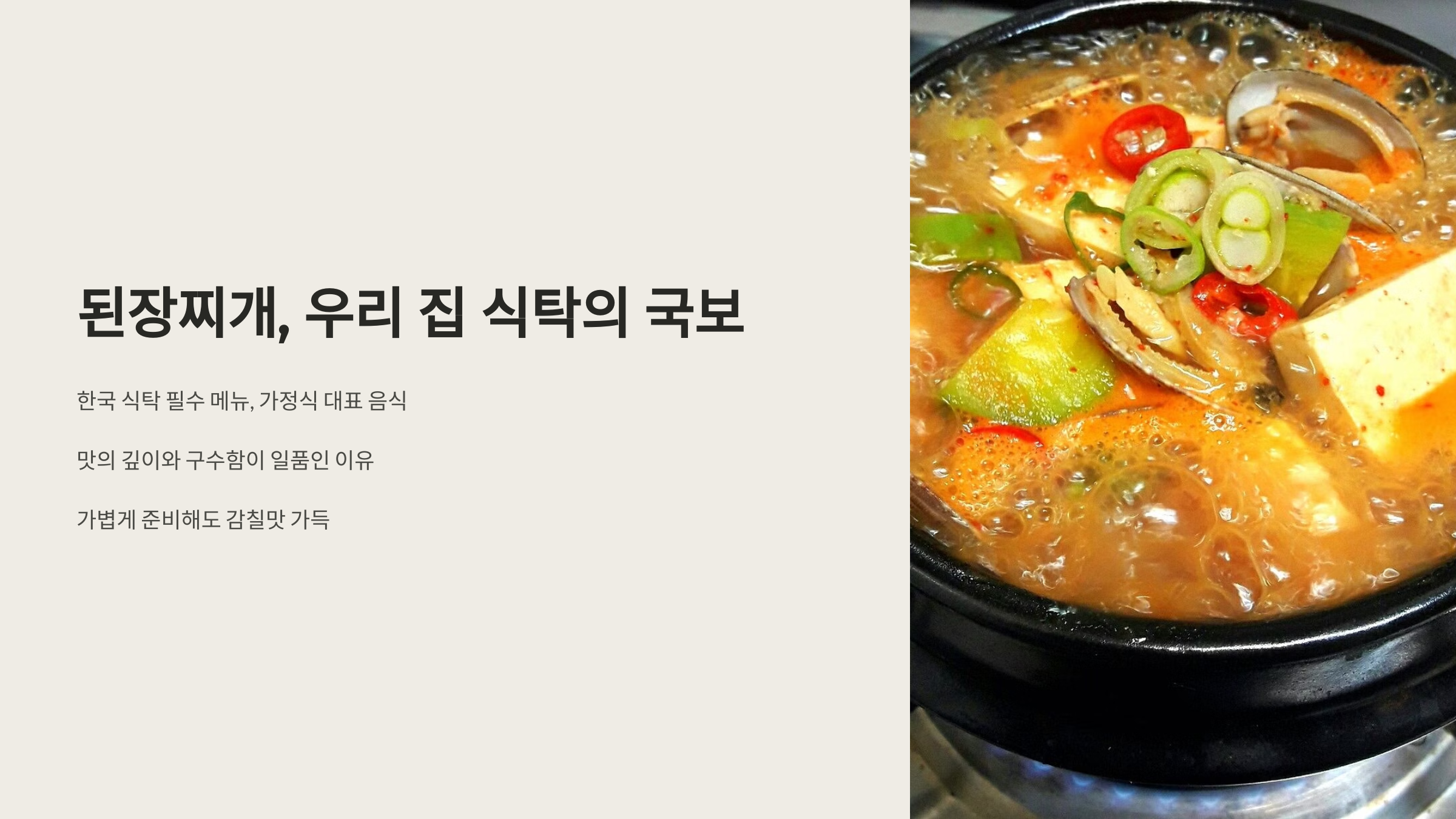 한국인의 식탁에서 빠질 수 없는 음식, 된장찌개. 구수하고 깊은 맛이 일품인 된장찌개는 끓이는 방법에 따라 맛의 차이가 확연히 달라지는데요. 오늘은 된장찌개 맛있게 끓이는 방법을 자세히 알아보겠습니다.