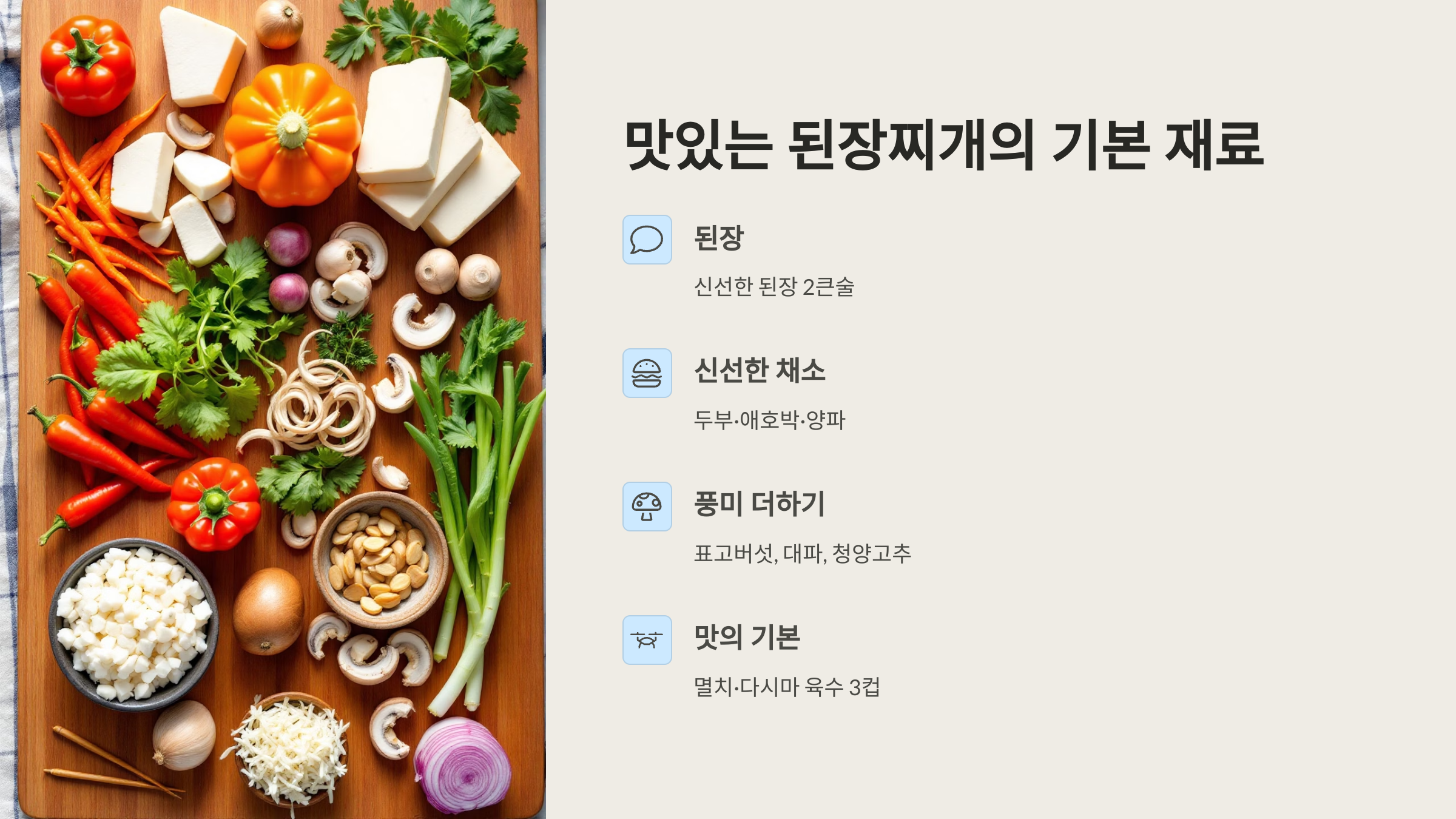 맛있는 된장찌개를 만들기 위해서는 기본 재료의 선택이 중요합니다. 신선한 재료를 사용하면 된장찌개의 맛이 한층 더 깊어집니다.