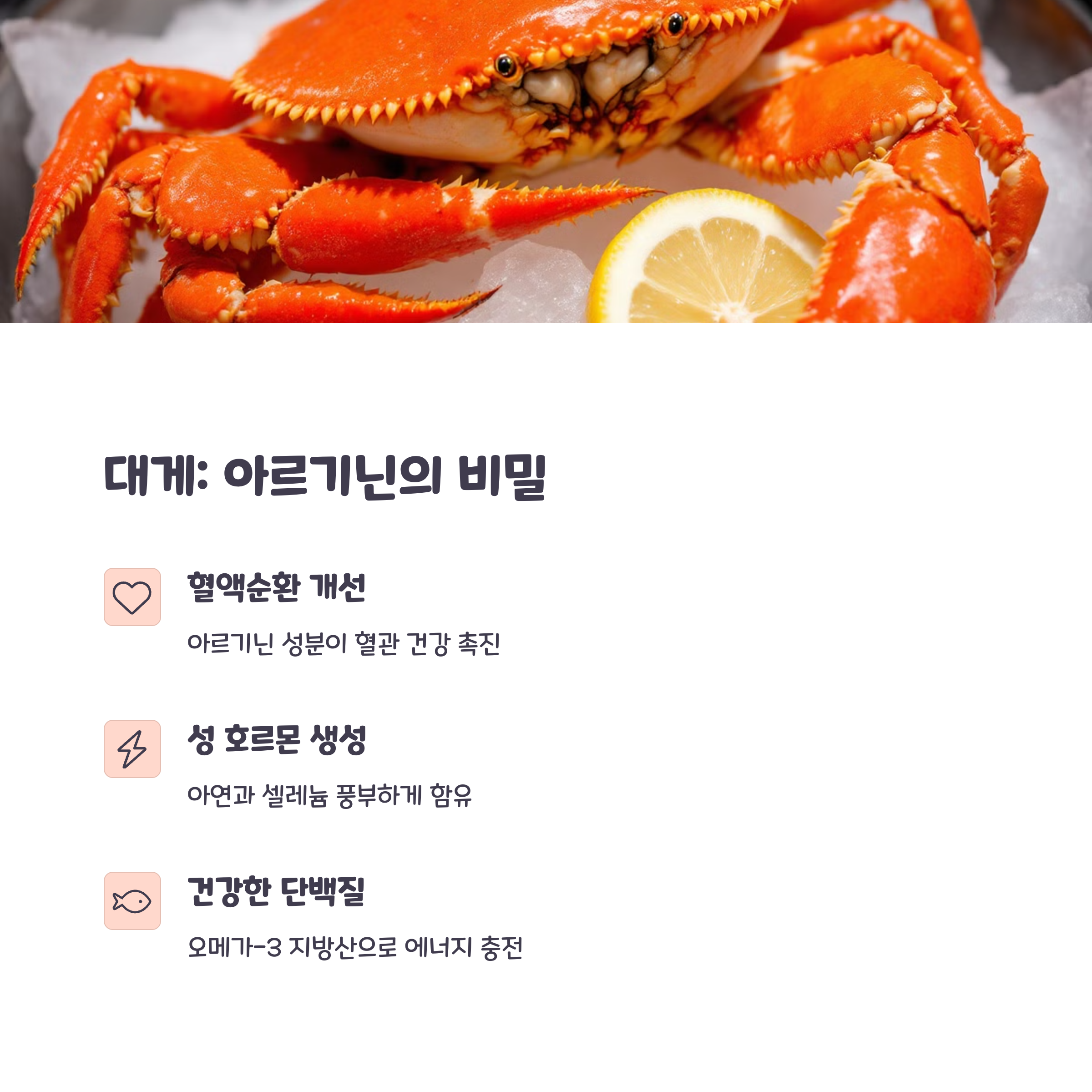 | 대게 | 아르기닌 | 남성호르몬 증가 |