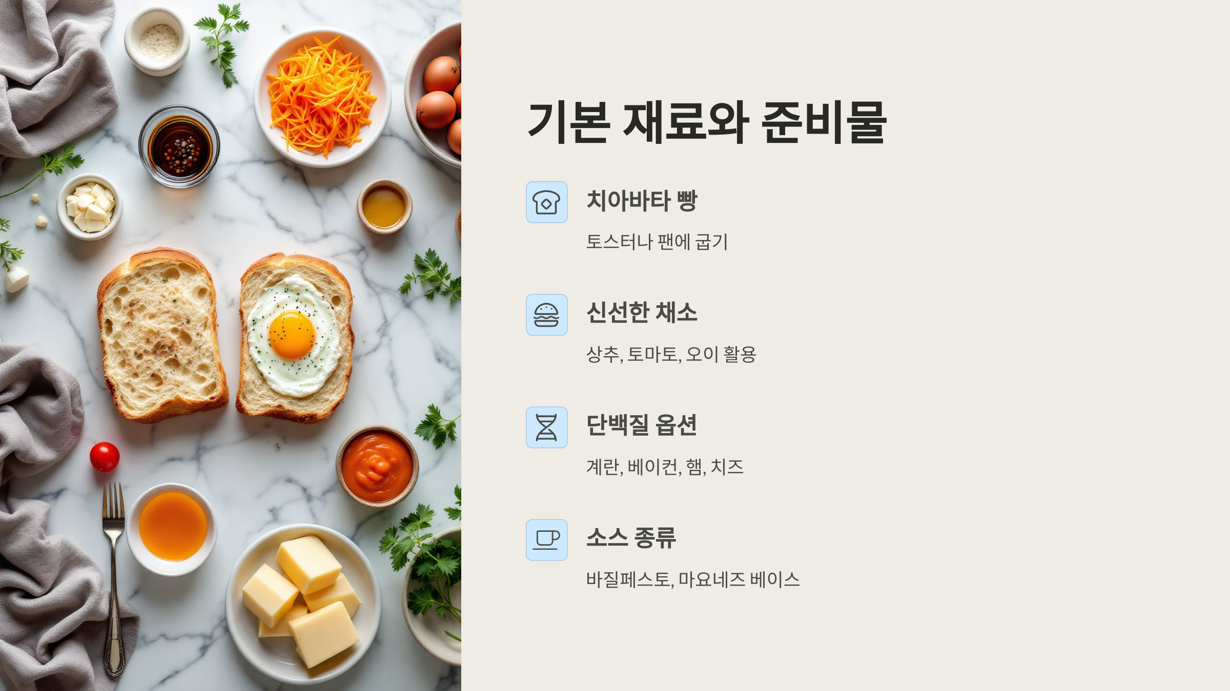 지금부터 치아바타 샌드위치 만들기의 기본 과정을 단계별로 알려드릴게요! 특히 계란을 활용한 레시피로, 계란 샌드위치 만들기의 기본을 마스터하실 수 있답니다.