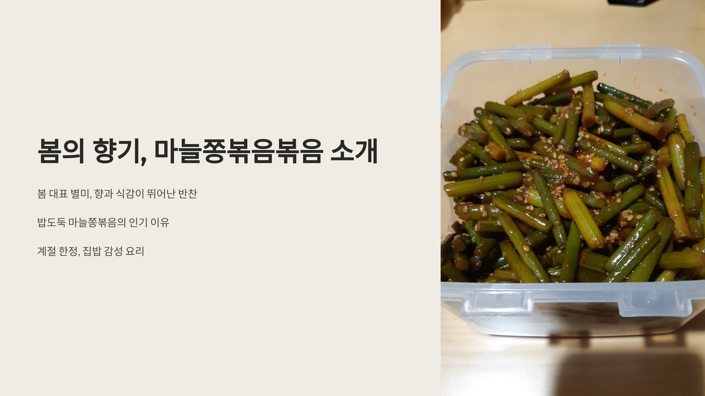 마무리: 봄 향기 가득 마늘쫑볶음볶음 즐기기 🌈