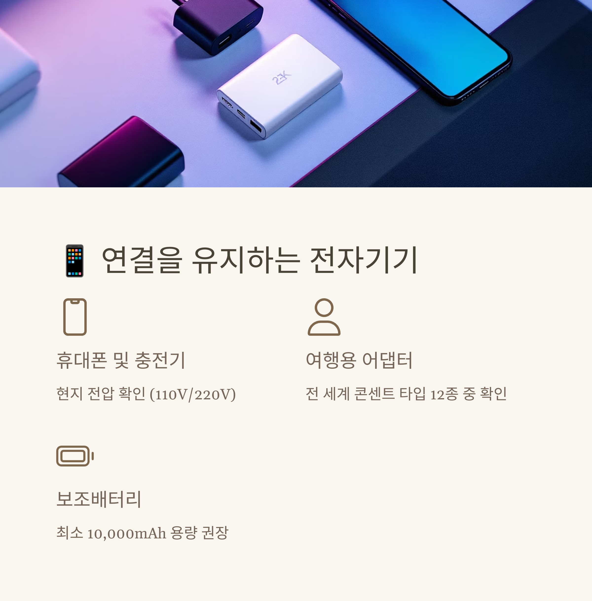 현대 여행에서 전자기기는 필수품이 되었습니다. 특히 외국에서는 충전과 변환 문제가 발생할 수 있으니 미리 준비해야 합니다.