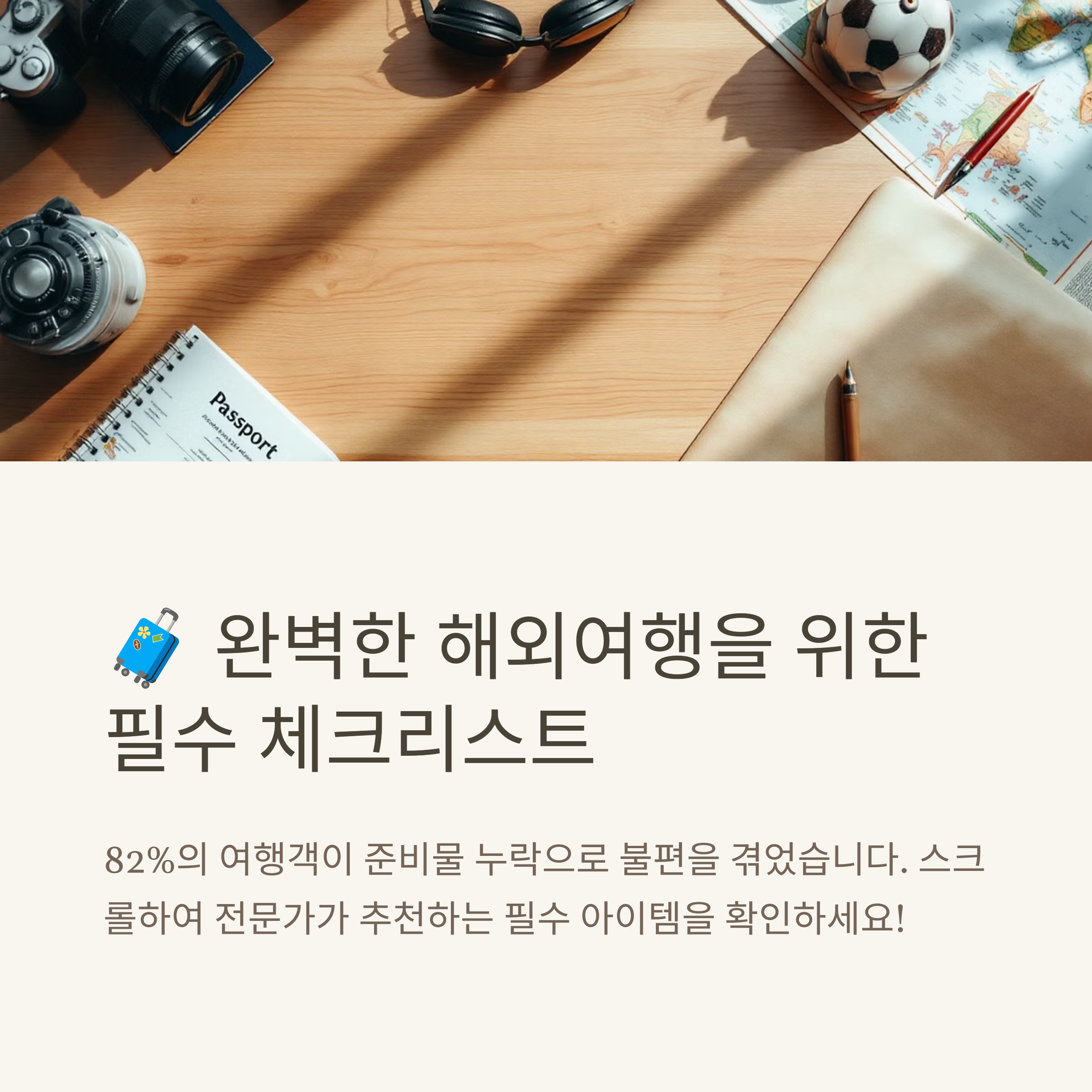 이 글에서는 여행 전문가들의 조언과 경험자들의 팁을 바탕으로 카테고리별 필수 준비물을 정리했습니다. 이 체크리스트만 따라가면 여러분의 여행은 한결 더 편안하고 즐거워질 것입니다!