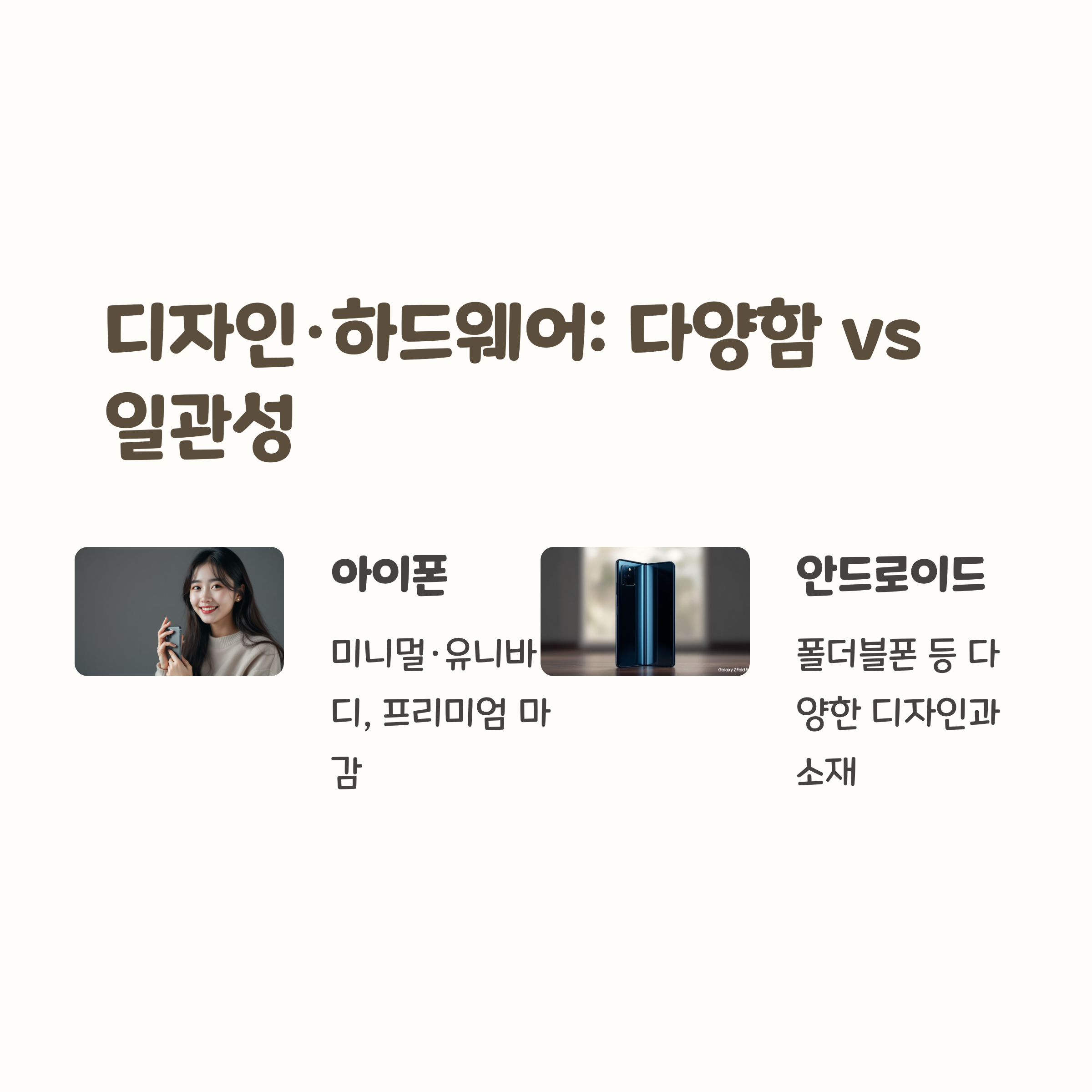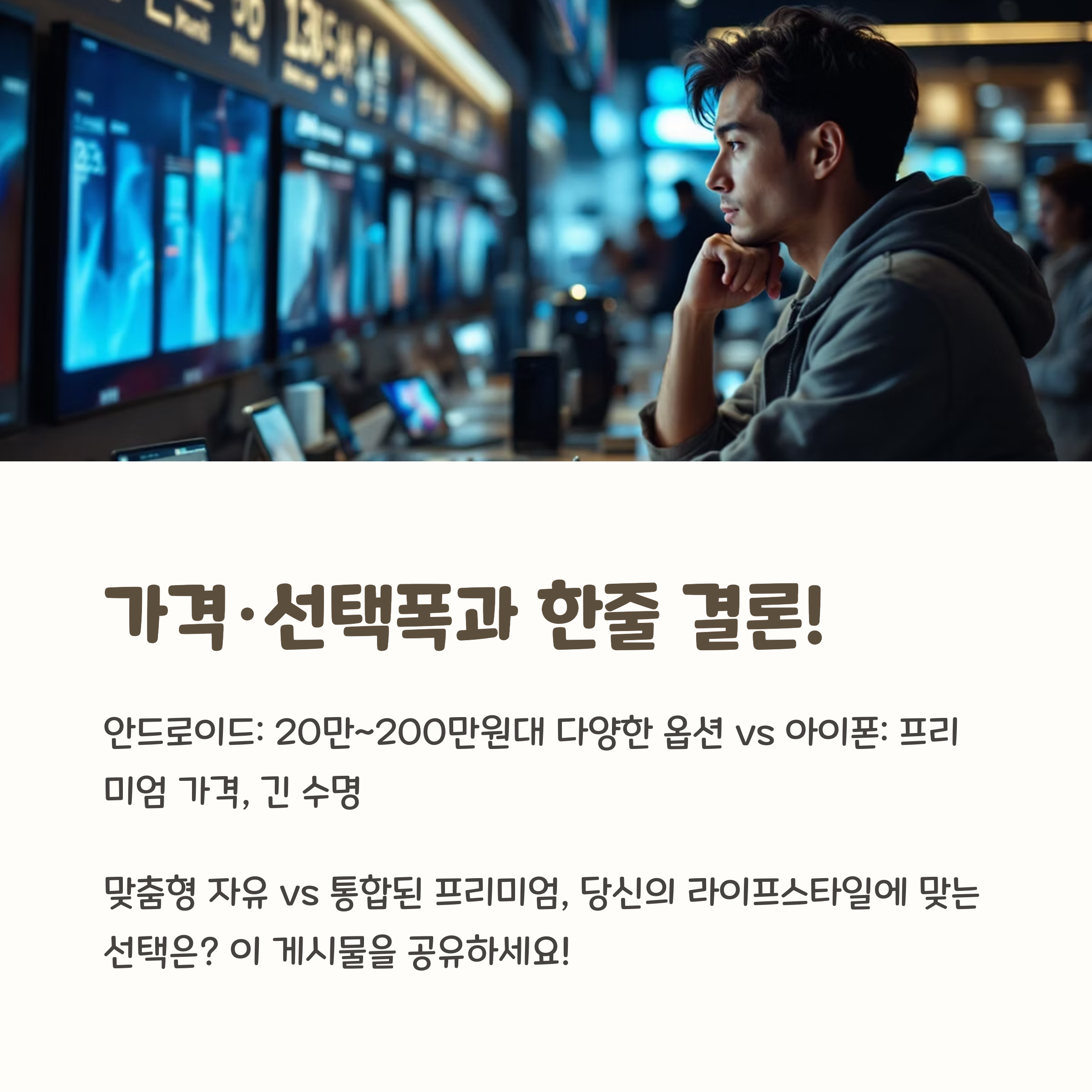 사용자는 예산과 선호하는 기능, 디자인에 맞춰 최적의 기기를 고를 수 있는 유연함을 가집니다. 이는 **안드로이드 vs 아이폰 차이점**을 논할 때 빼놓을 수 없는 부분입니다.