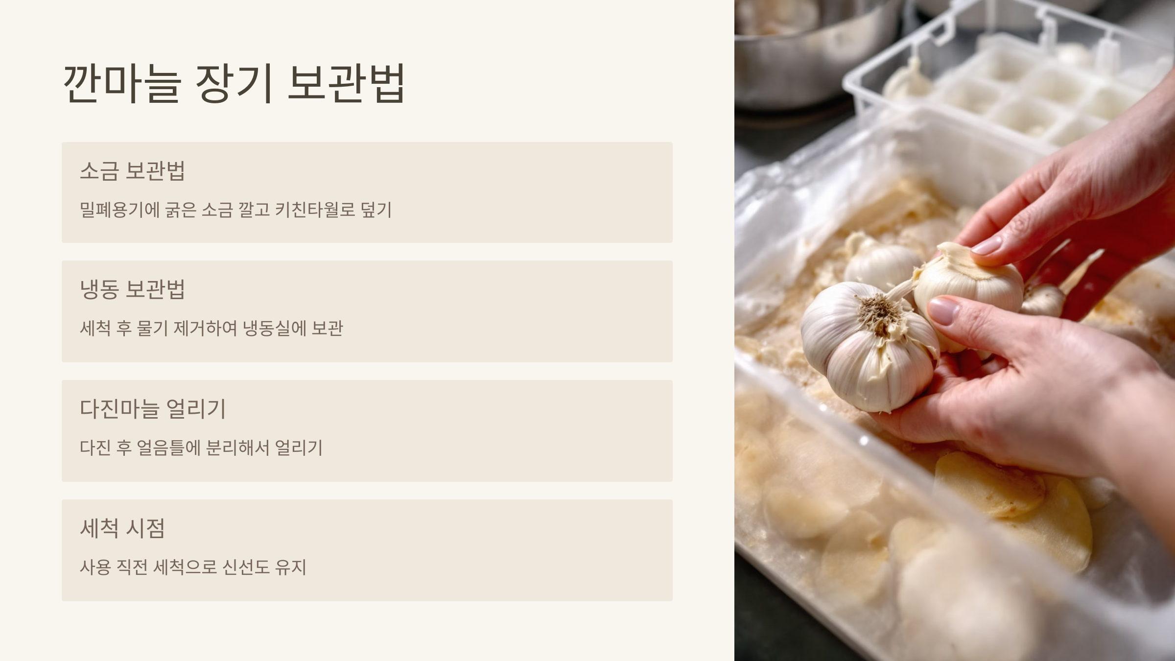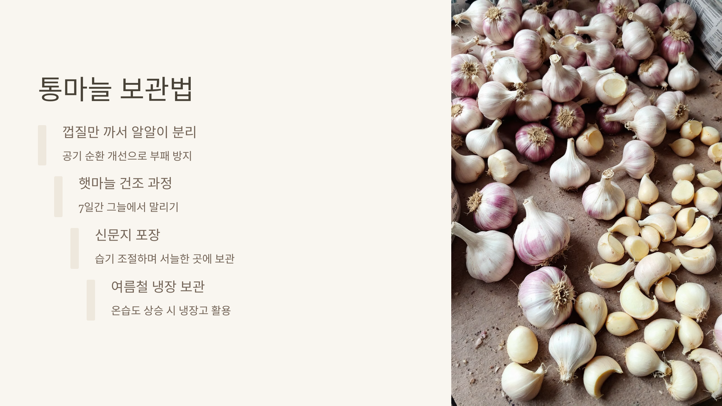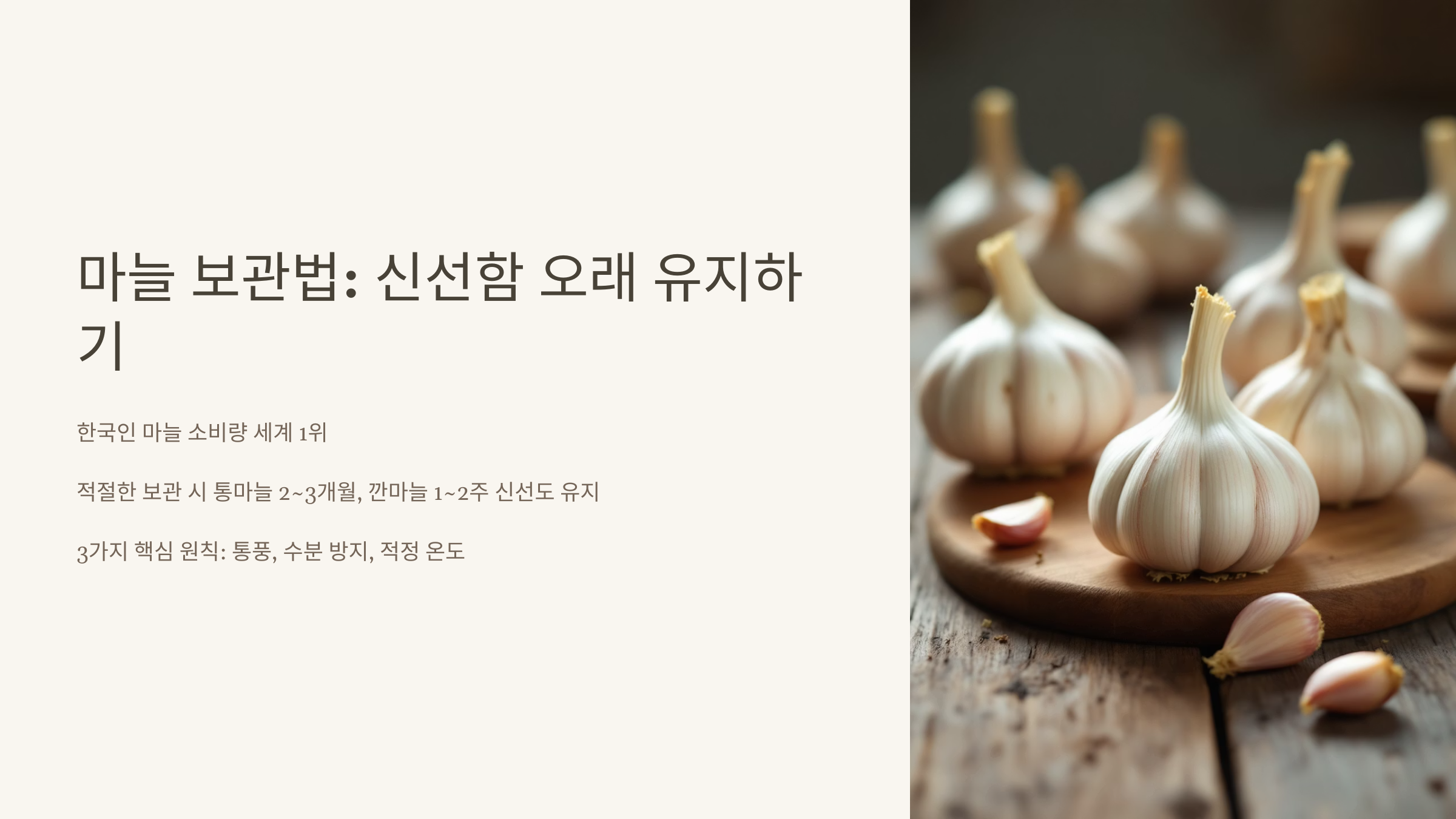 이번 글에서는 마늘 보관하는 방법을 통마늘과 깐마늘로 나누어 상세하게 알려드립니다. 신선함을 오래 유지하는 전문가 팁까지 함께 확인해보세요!