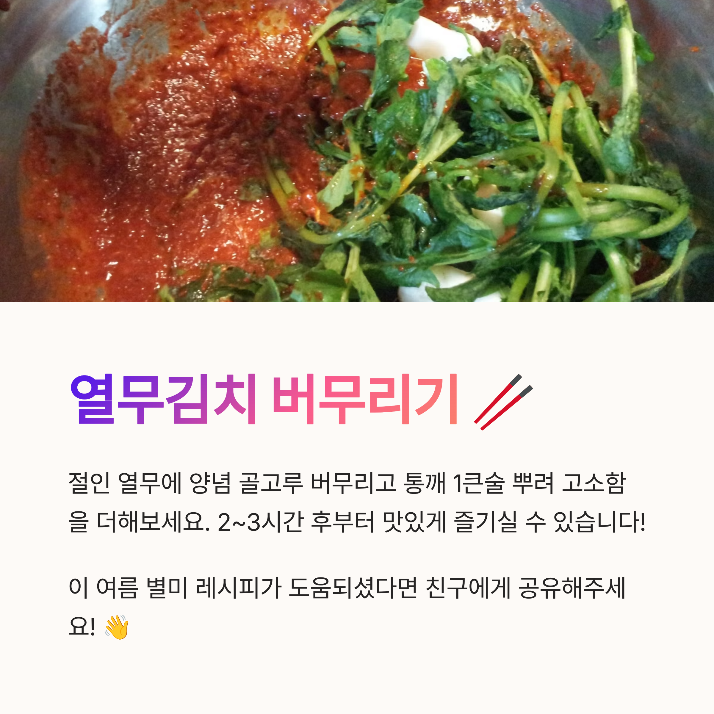 🌟 마무리하며: 맛있는 열무김치로 여름나기!