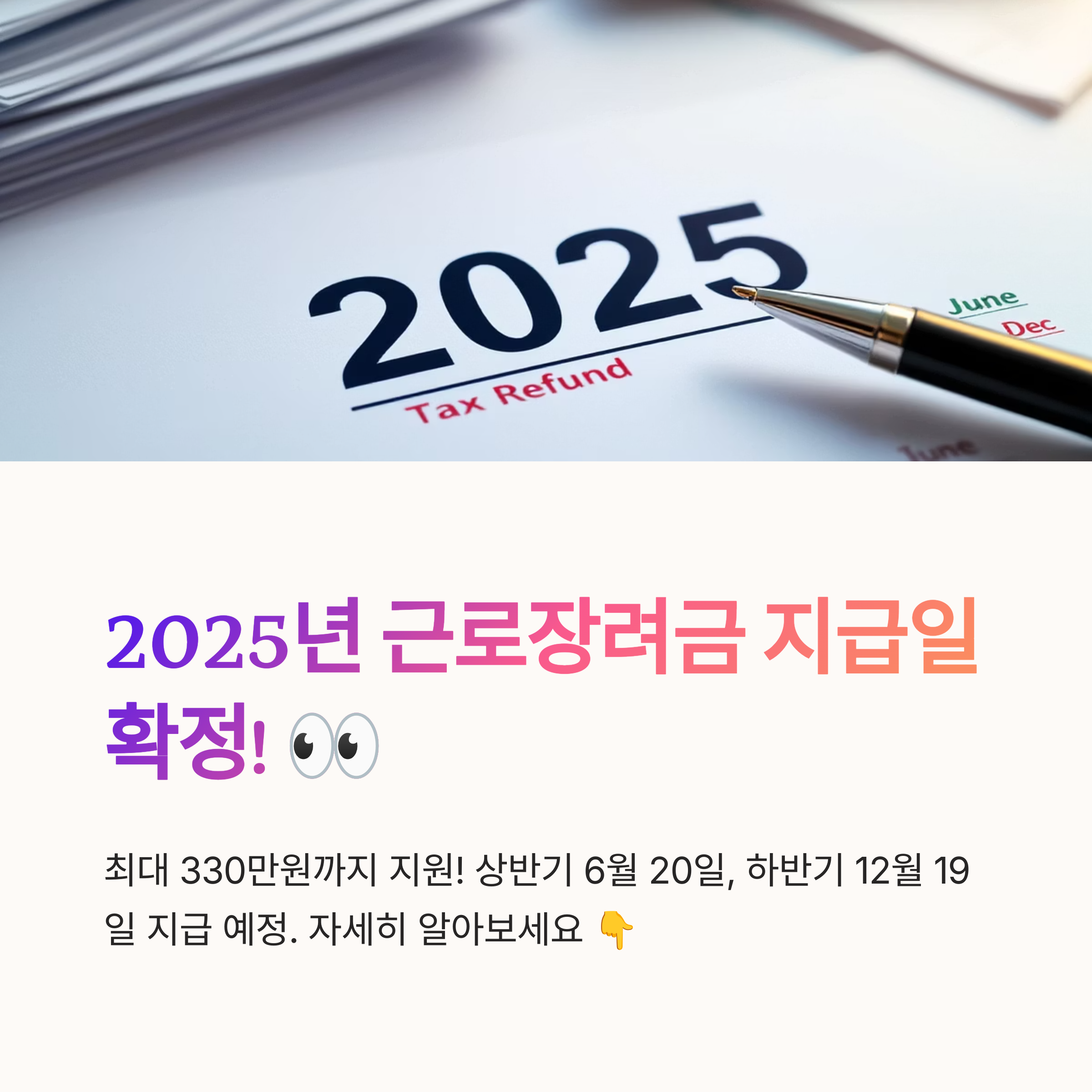 2025년 근로장려금 지급일확정 소식과 함께 신청 자격, 금액, 방법에 대해 자세히 알아보았습니다. 열심히 일하는 저소득 가구의 경제적 안정을 위한 소중한 지원제도인 근로장려금을 놓치지 마세요.