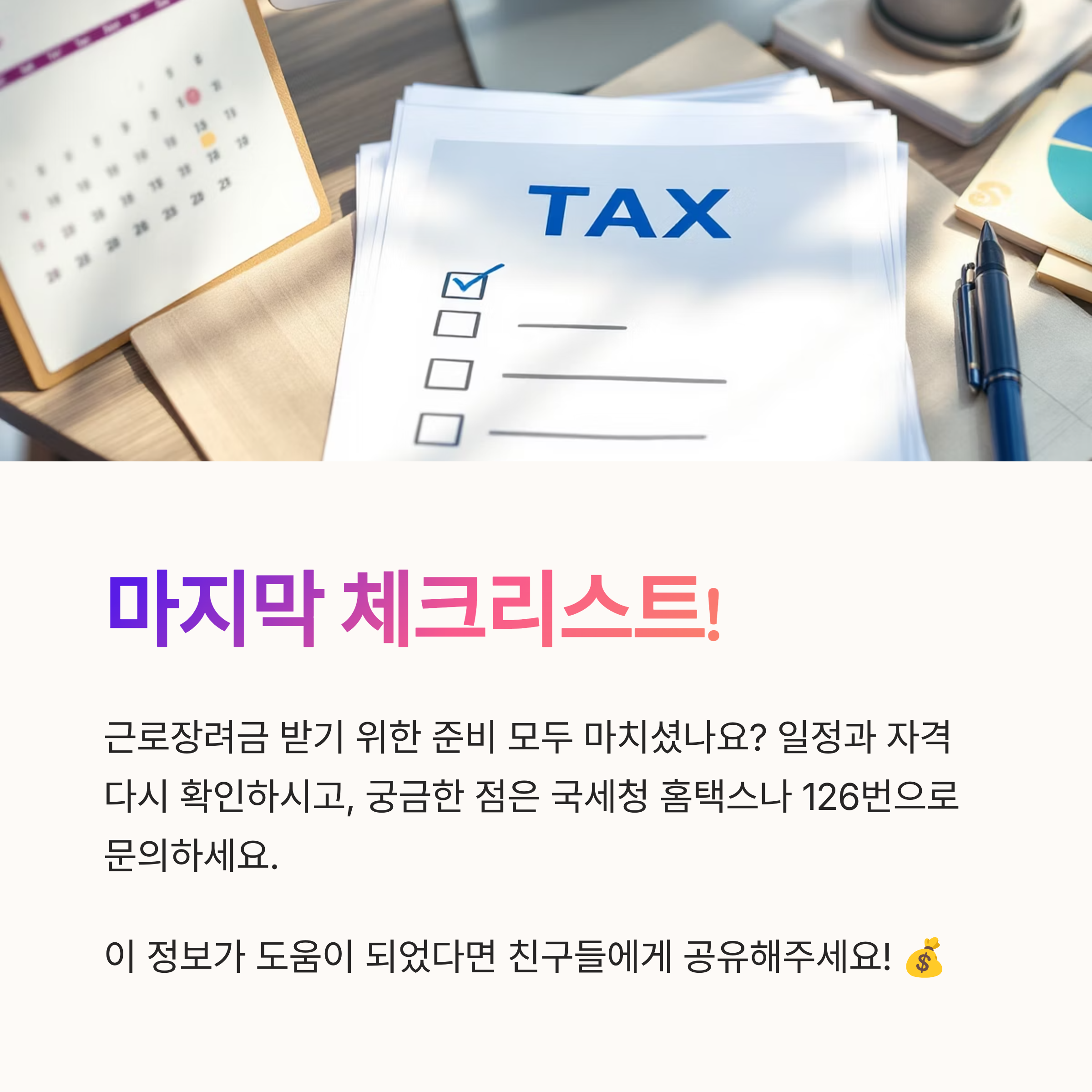 근로장려금 지급일은 저소득 가구의 생활 안정에 중요한 날입니다. 신청 자격을 갖추었다면 반드시 기간 내에 신청하고, 위에서 안내한 지급일 일정을 캘린더에 표시해두세요. 또한 매년 변경되는 정책과 일정을 국세청 공식 채널을 통해 정기적으로 확인하는 것이 좋습니다. 🗓️