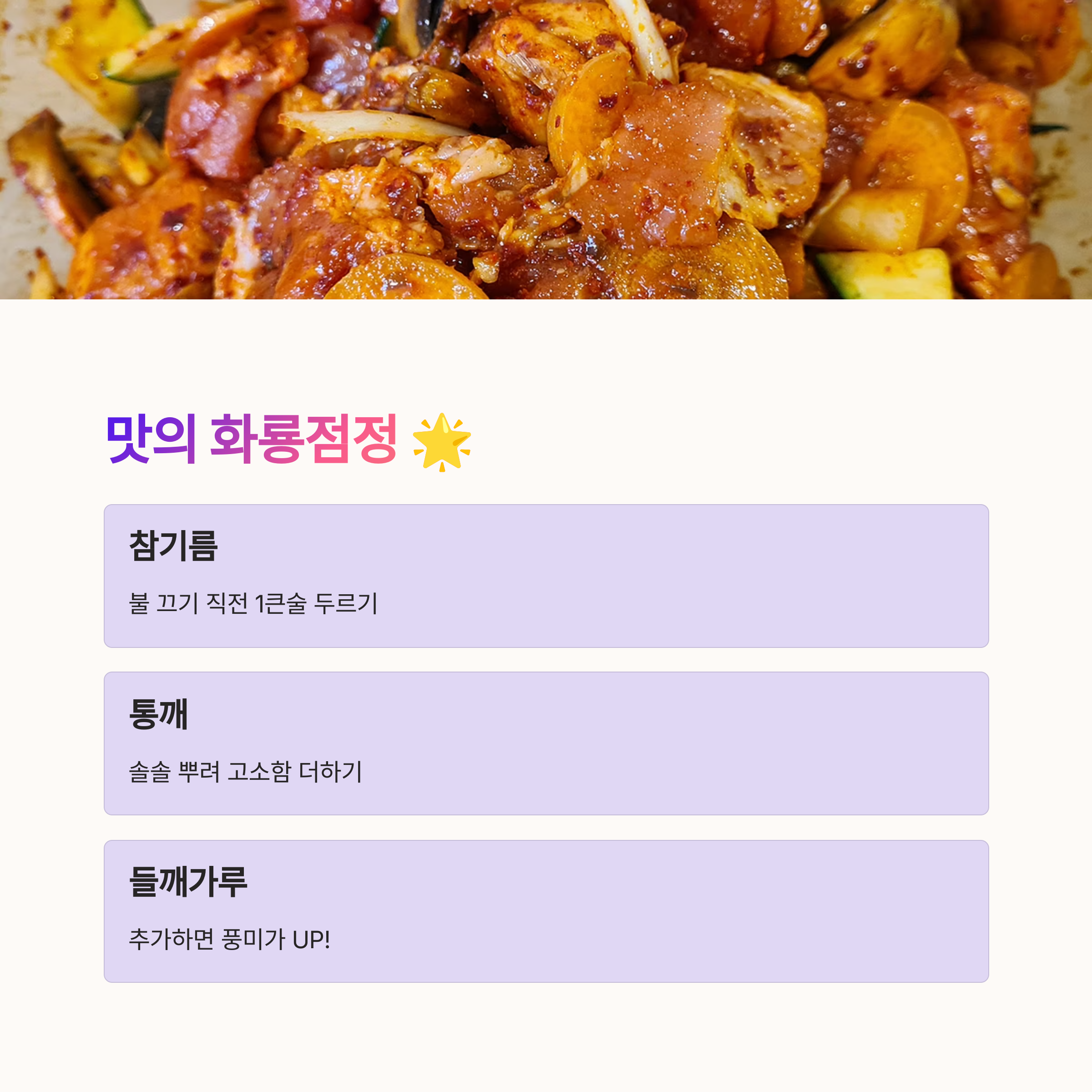 ❓ Q3. 제육볶음 맛이 어딘가 부족하고 밋밋해요. 비법이 있나요?
