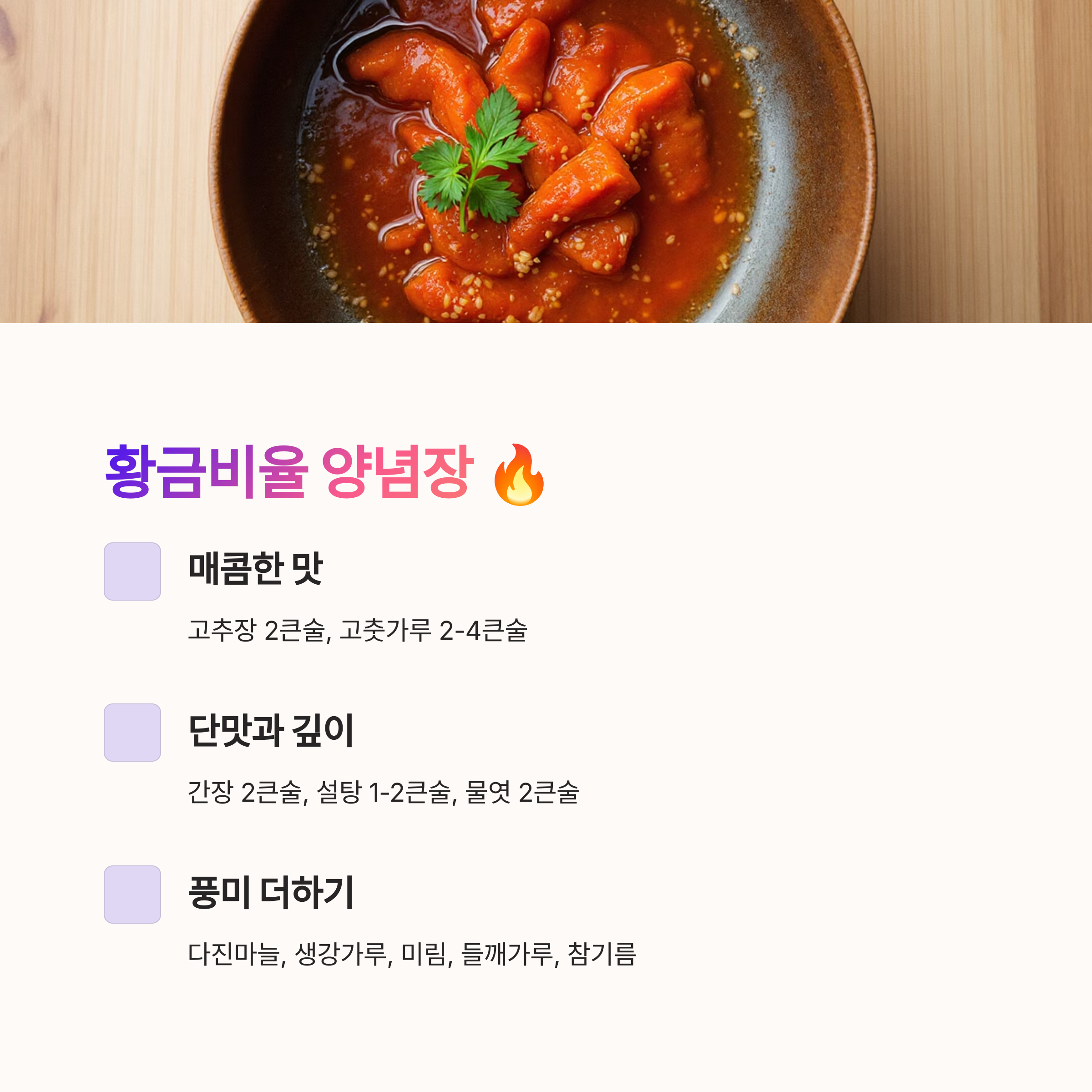 • 양념 재료: 아래 표를 참고해주세요! 📊