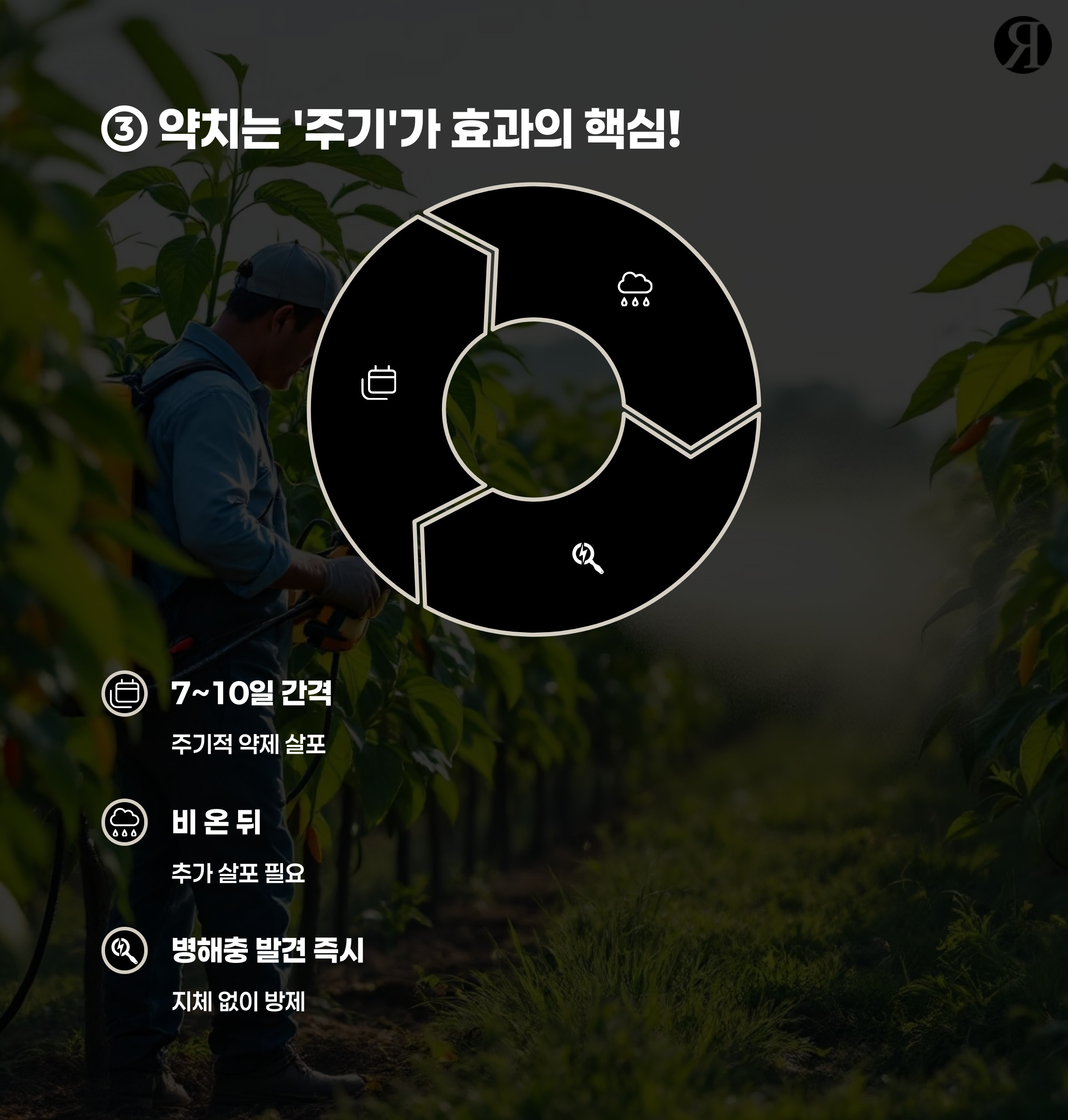 - 예방 약제: 7~10일 간격으로 정기적인 살포