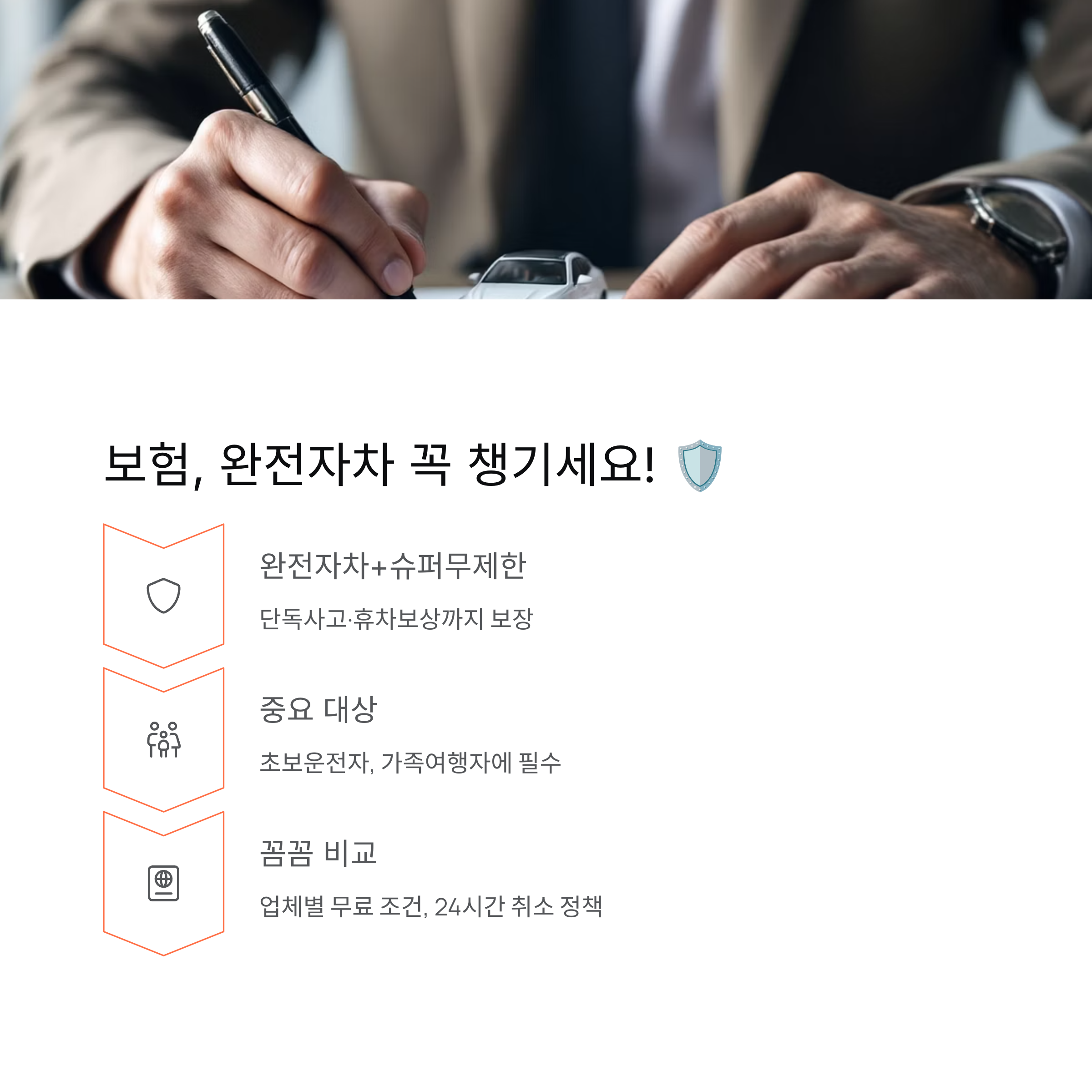 업체마다 보장 범위와 자기부담금 조건이 다르니 꼼꼼히 비교하고 선택하세요. 제주도는 도로 폭이 좁거나 비포장도로도 간혹 있으니, 만약을 대비하는 것이 좋습니다.