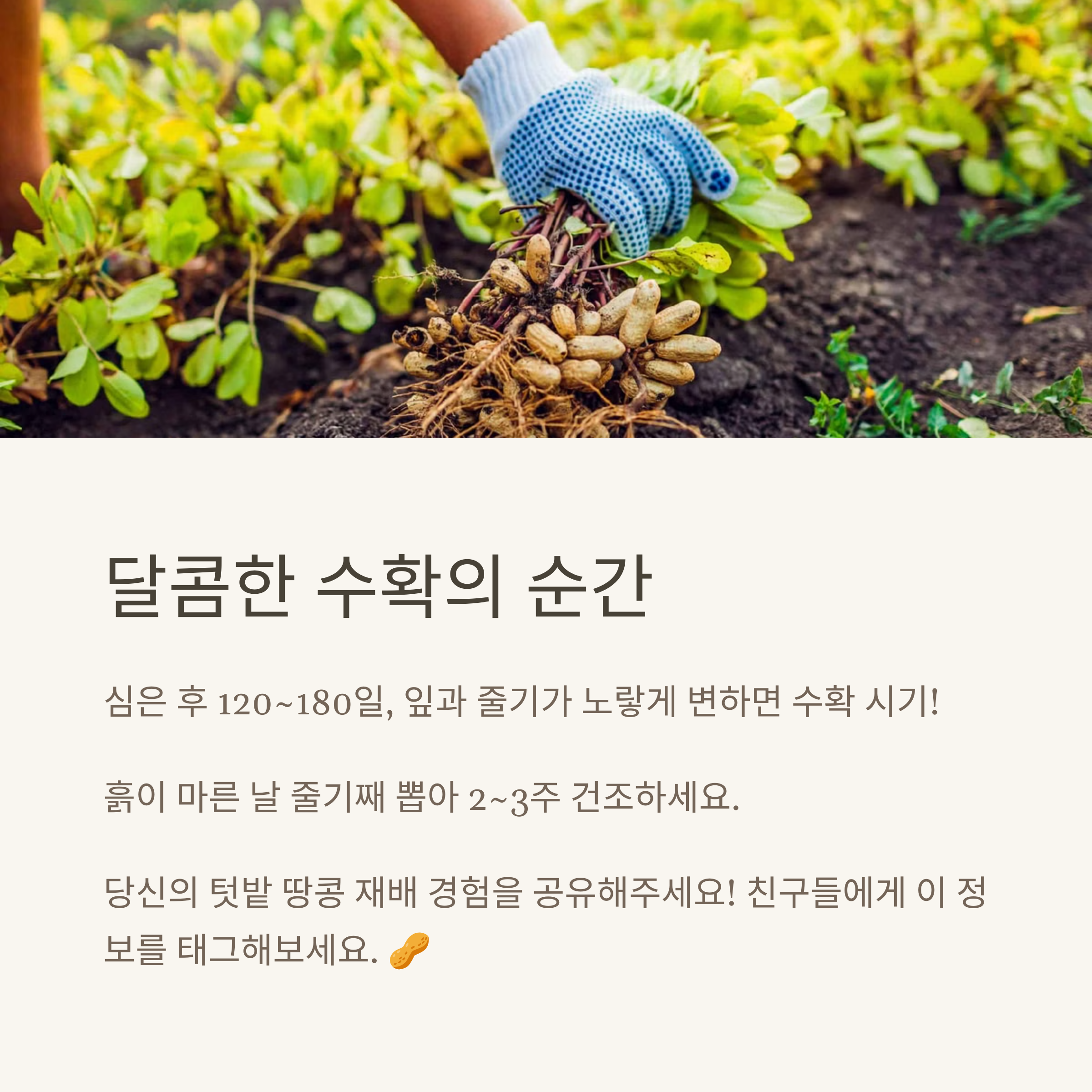 봄이 오면 텃밭에서 땅콩 심기를 계획하시는 분들 많죠? 땅콩 심는시기를 잘 맞추면 고소한 수확의 기쁨을 누릴 수 있어요.