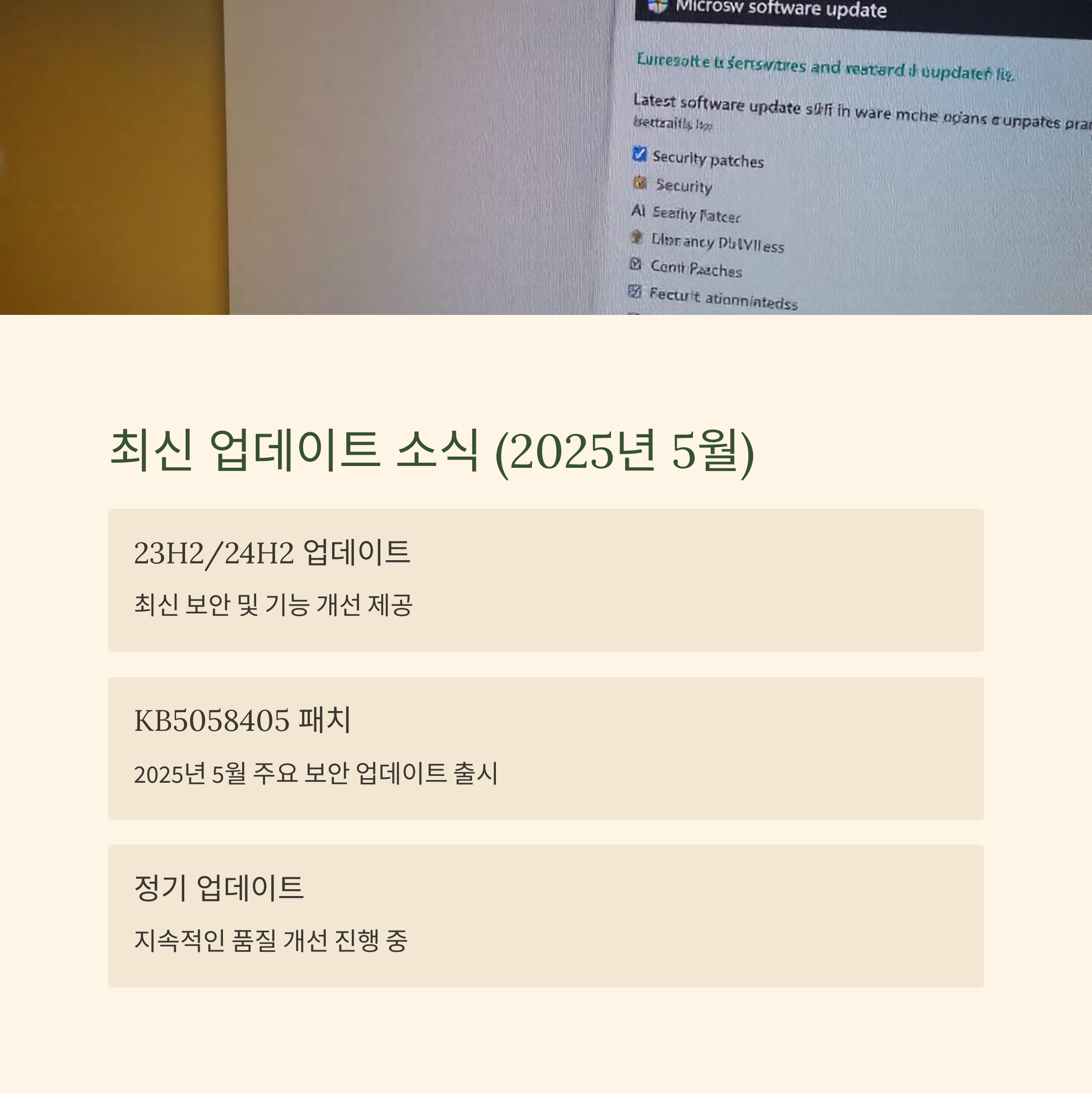 2025년 5월 기준, 가장 최신 버전인 윈도우11 24H2 업데이트까지 한 번에 받을 수 있도록 설정해 두는 것이 좋습니다. 윈도우11 무료 업데이트 후 추가 기능 업데이트는 Windows Update를 통해 자동으로 제공됩니다.