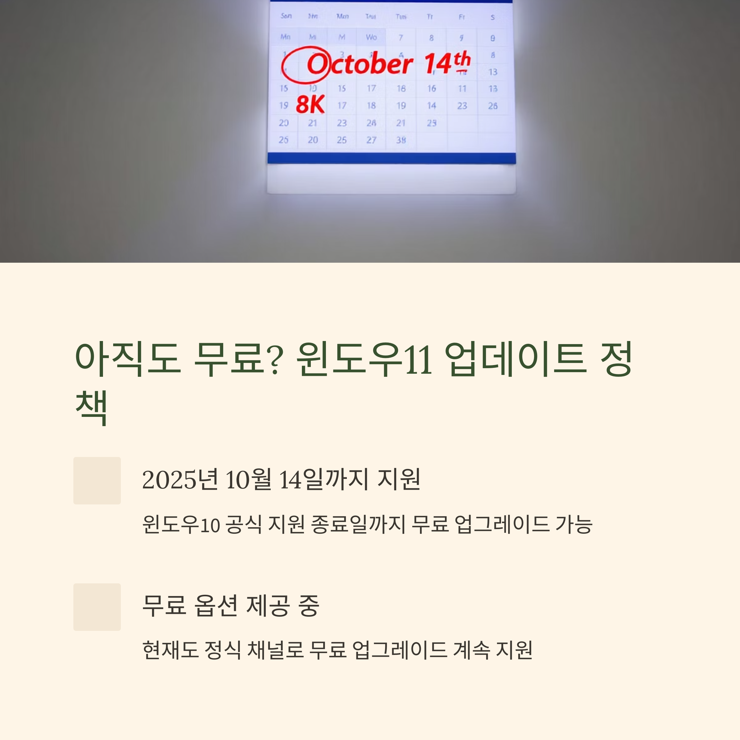 마이크로소프트는 공식적으로 윈도우10 지원 종료일인 2025년 10월 14일까지 무료 업그레이드 옵션을 유지할 것으로 발표했습니다.