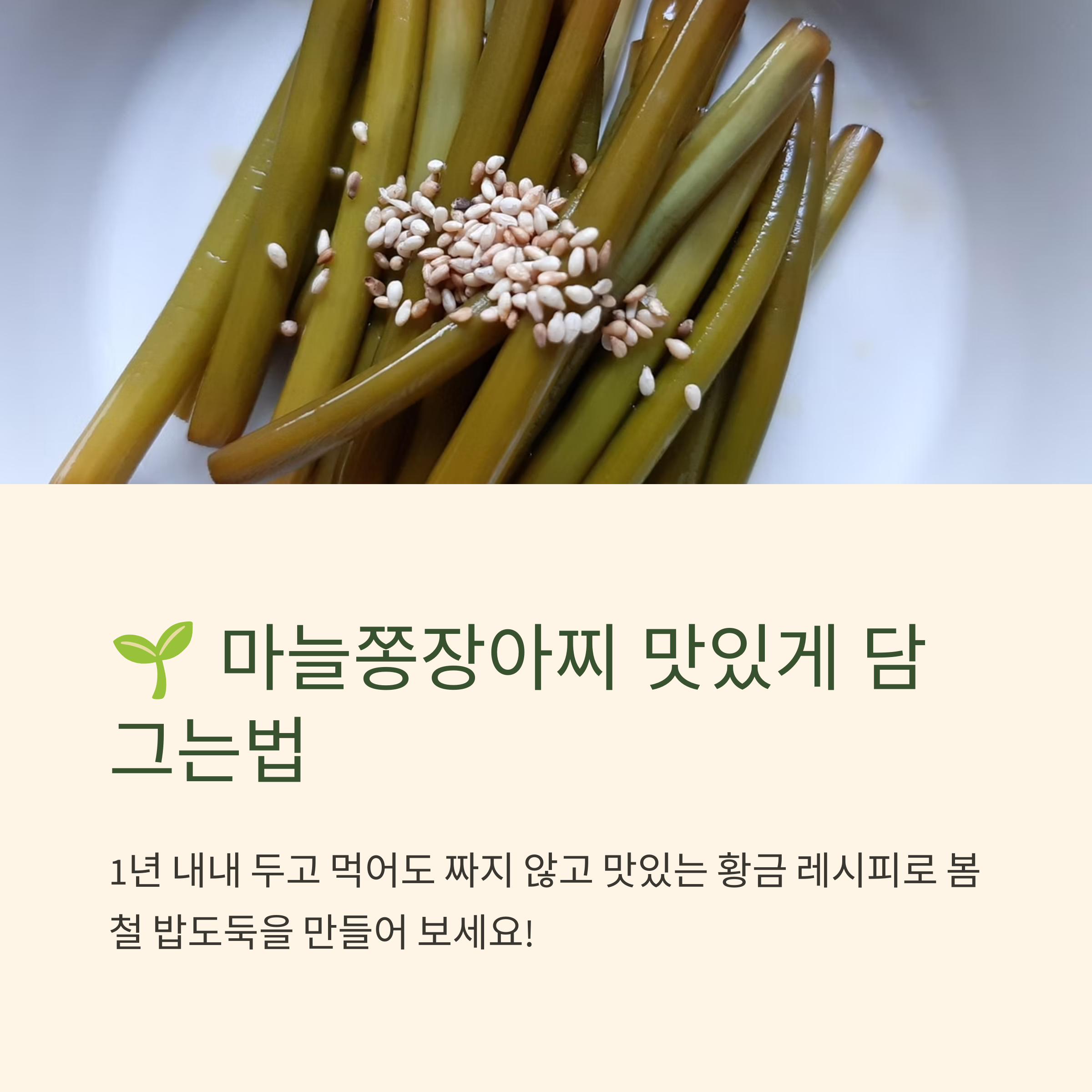 🎉 마무리하며: 맛있는 마늘쫑장아찌로 식탁을 풍성하게!