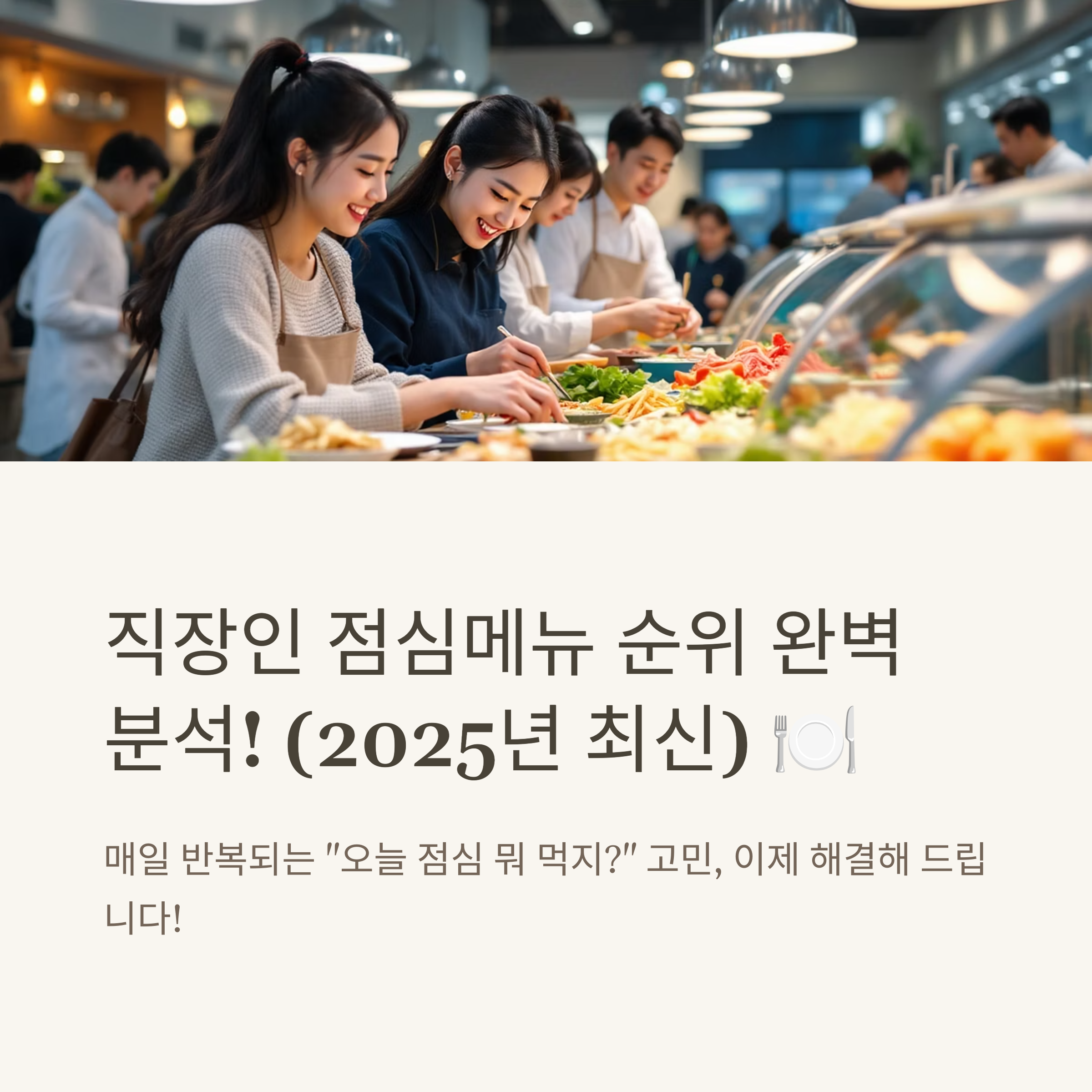점심메뉴 추천: 직장인 점심메뉴 순위 완벽 분석! (2025년 최신) 🍽️