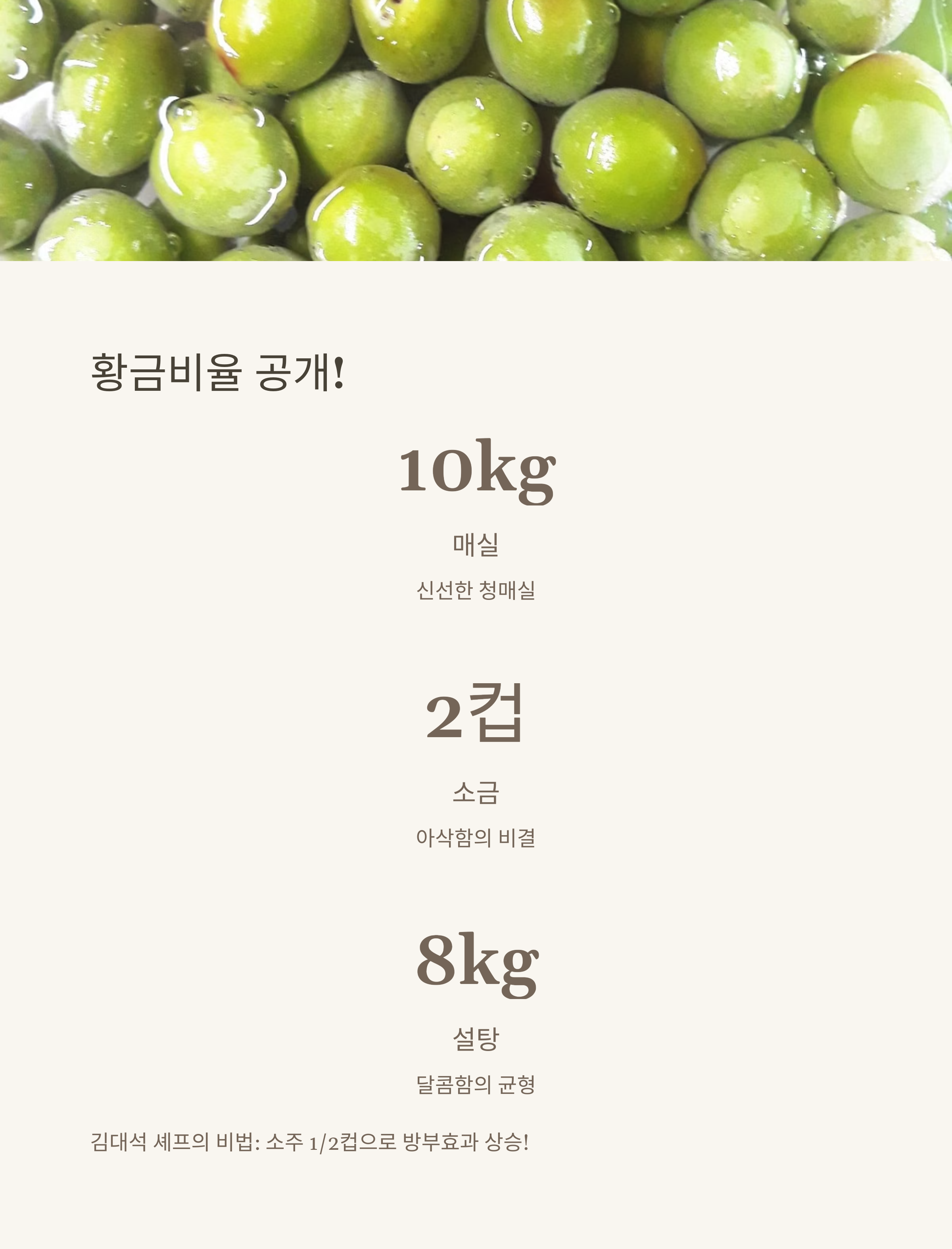 - 청매실 1kg (단단하고 흠집 없는 것)