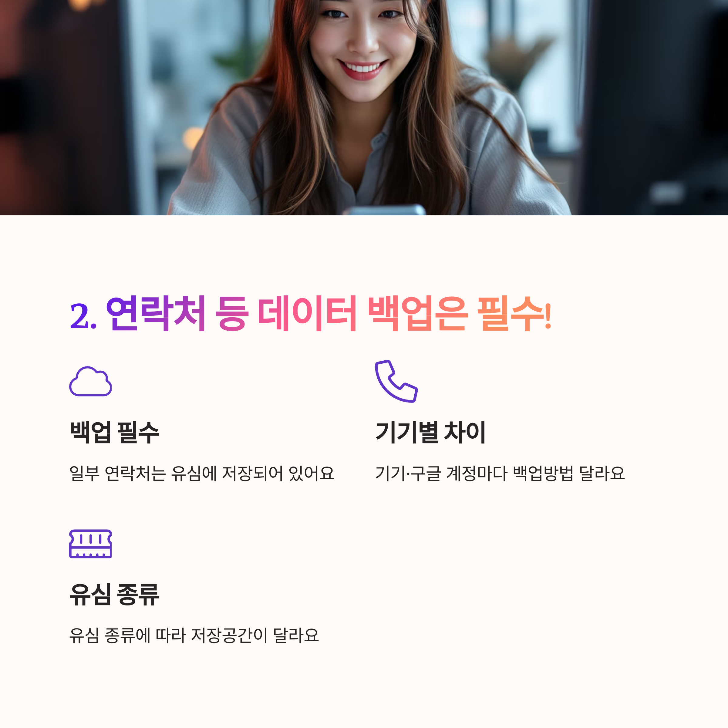 하지만 만약을 대비해 유심 교체시 주의사항으로 중요한 데이터는 항상 백업하는 습관을 들이는 것이 좋습니다.