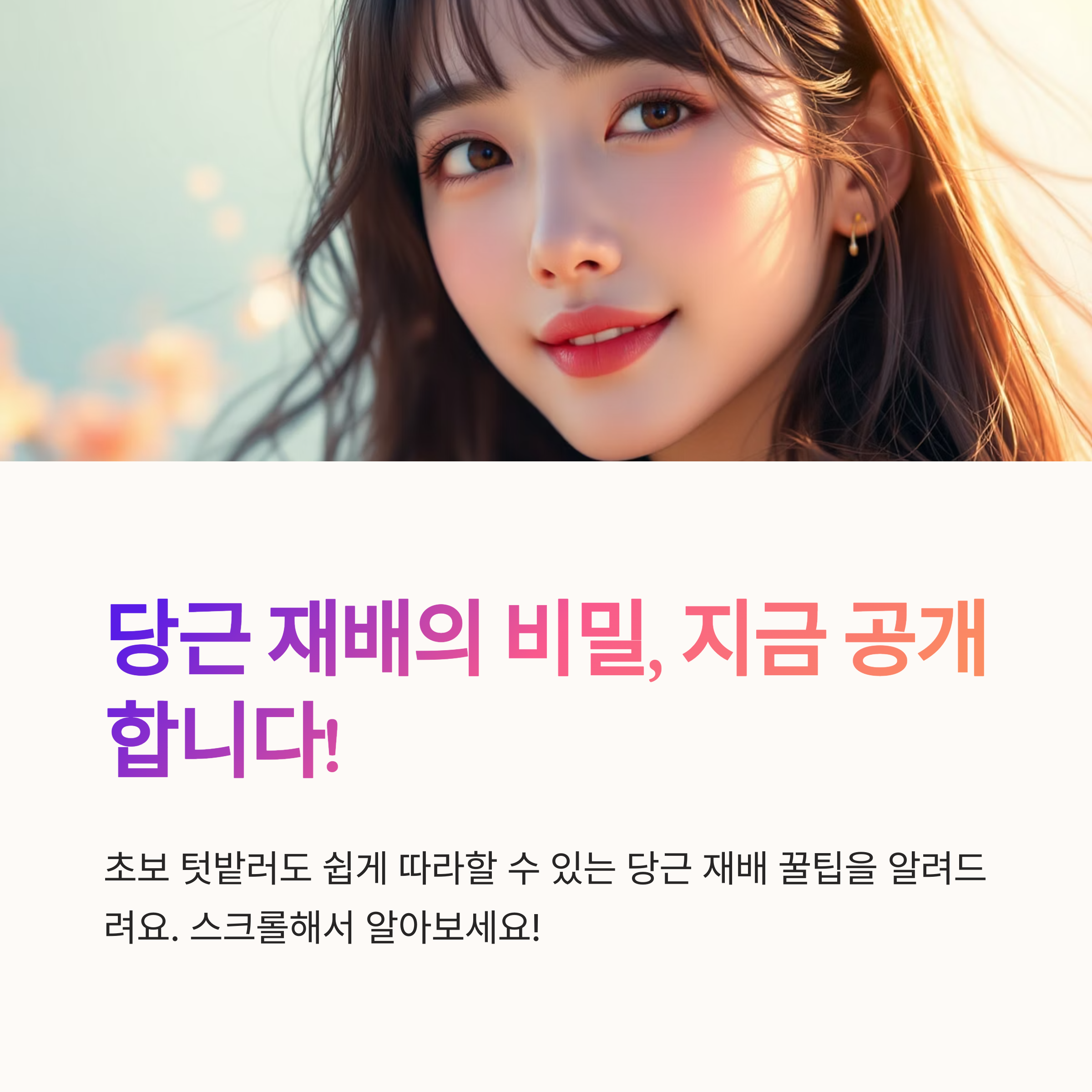 이번 주말, 텃밭 한 켠에 당근 씨앗을 한번 심어보시는 건 어떨까요? 직접 키운 당근의 진한 달콤함이 여러분을 기다리고 있을 겁니다!