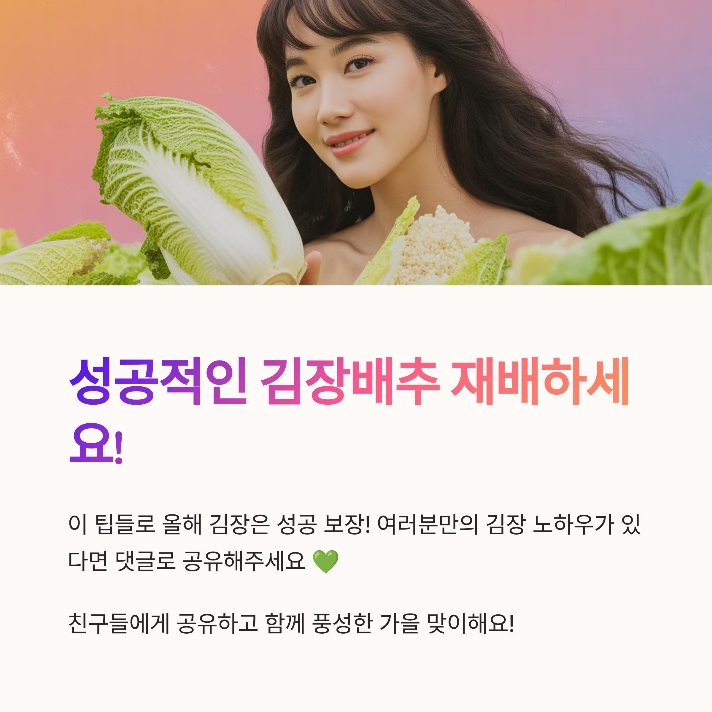 이번 가을, 여러분의 텃밭에서 멋진 김장배추를 키워 맛있는 김치를 담가보세요! 궁금한 점이 있다면 언제든 댓글로 물어보시면 친절히 답변드릴게요. 😊