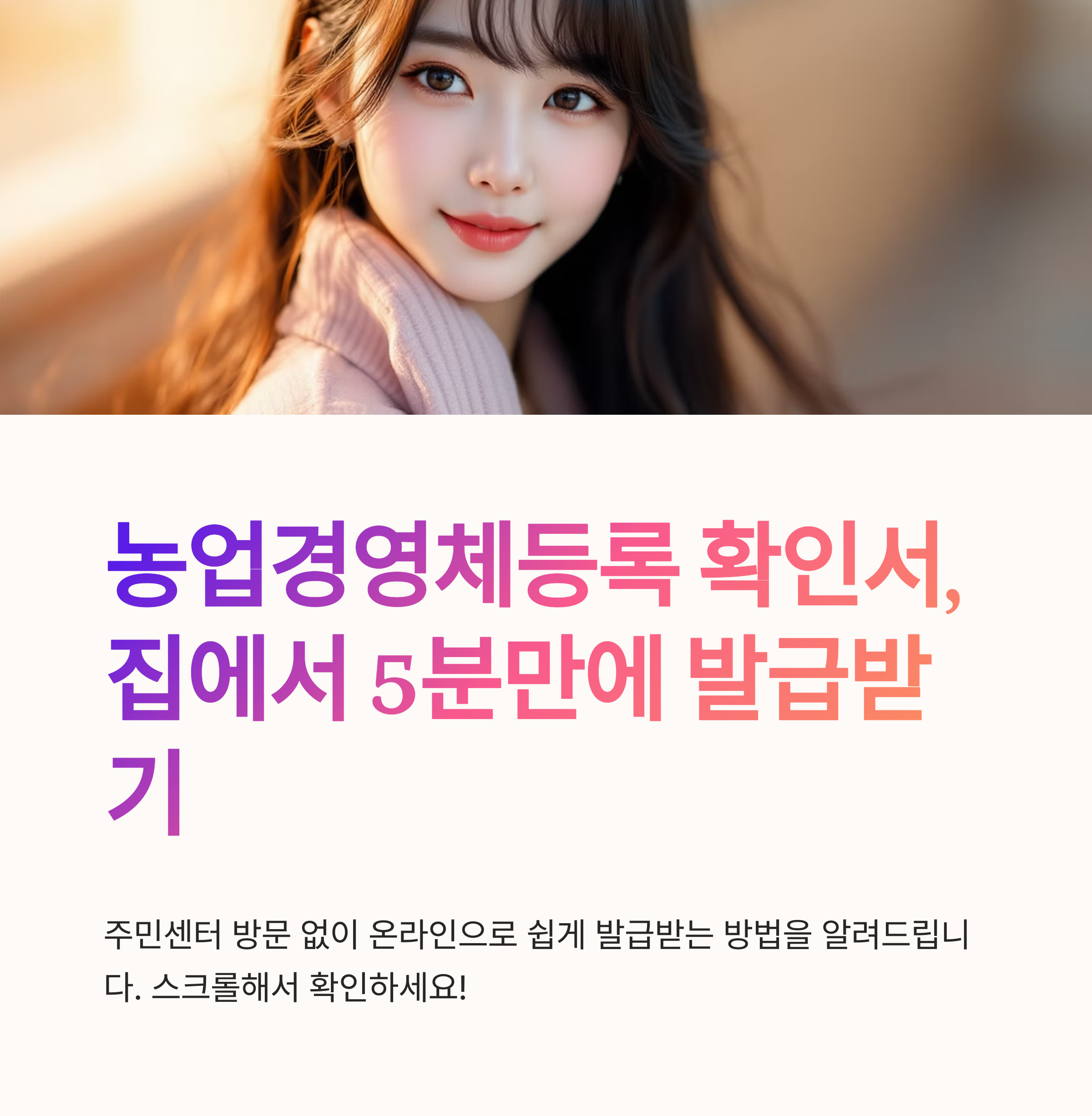 오늘 제가 알려드린 농업경영체등록 확인서 발급 방법을 통해 정부의 다양한 혜택을 빠짐없이 누리시는 스마트한 농업인이 되시길 바랍니다. 작은 정보 하나가 여러분의 소중한 시간을 아껴줄 수 있습니다!