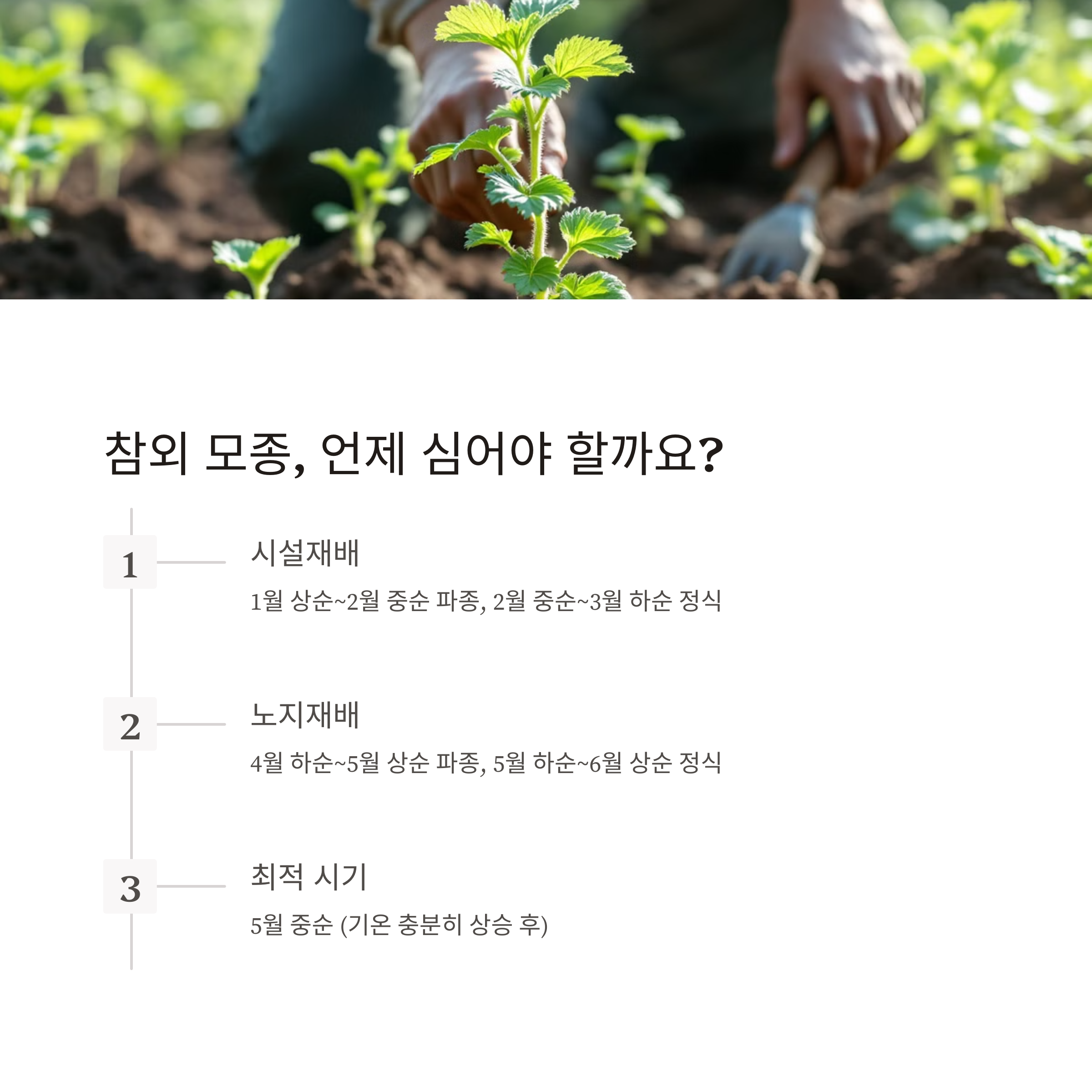 농촌진흥청 권장 사항에 따르면, 참외 모종 심는 시기는 서리가 완전히 끝난 후가 안전해요. 지역 날씨를 꼭 확인하세요! 📅