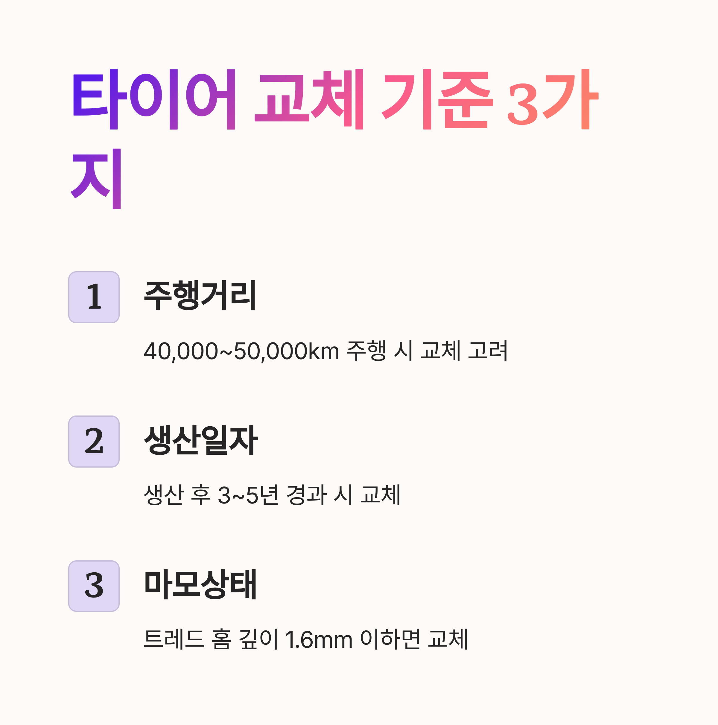 🤔 타이어, 언제 바꿔야 할까요? 교체 시기의 3가지 기준