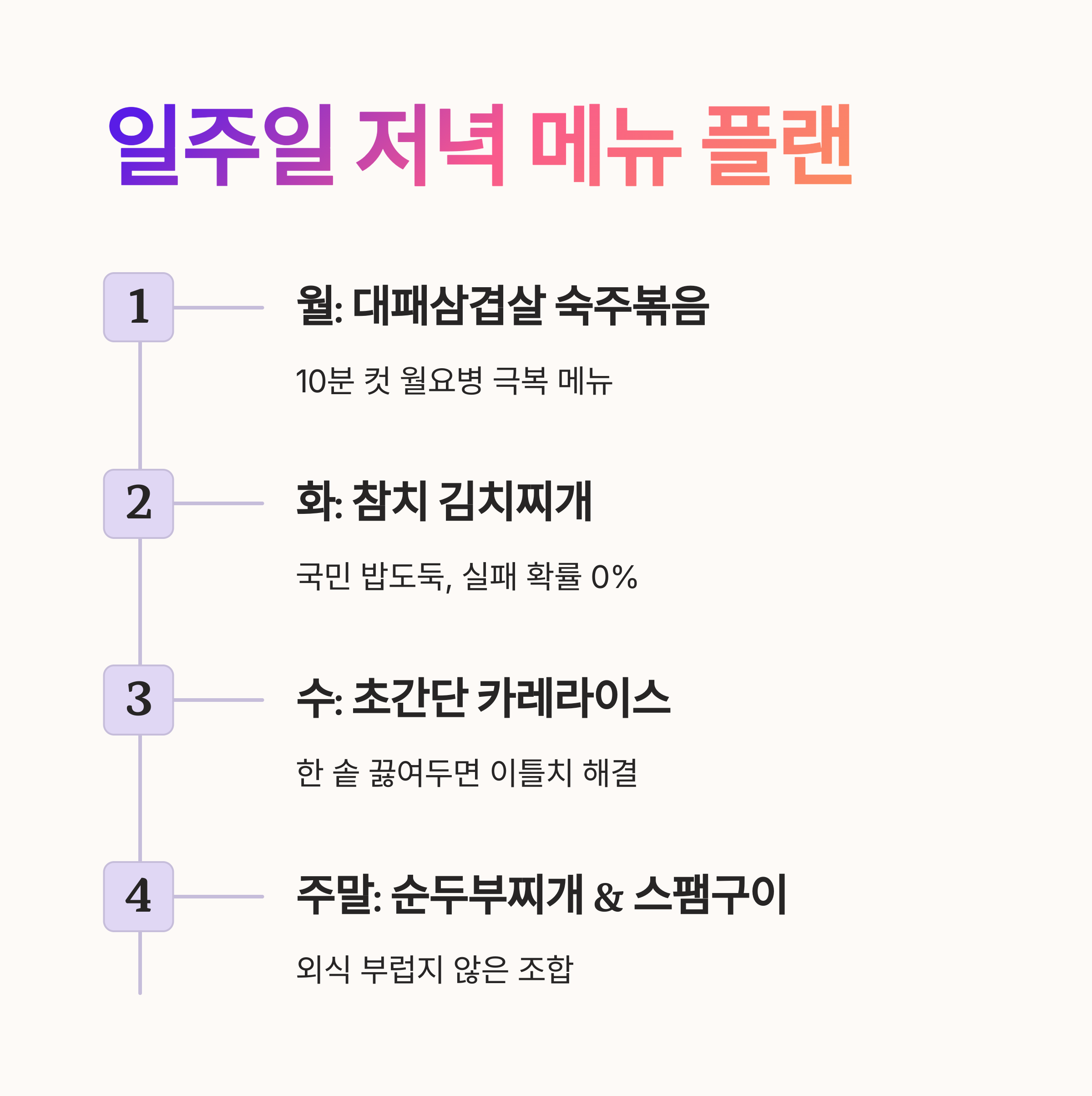 📊 고민 없이 따라만 하세요! 일주일 저녁메뉴 추천 식단표