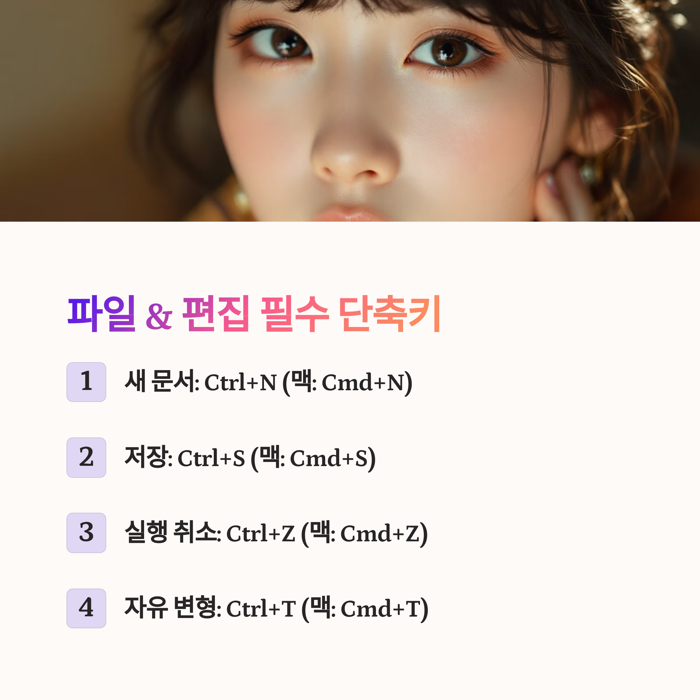 포토샵을 처음 켤 때의 설렘도 잠시, 수많은 메뉴와 도구 앞에서 막막했던 경험 다들 있으시죠? 마우스로 하나하나 클릭하며 작업하다 보면 어느새 시간은 훌쩍 지나가 버립니다.