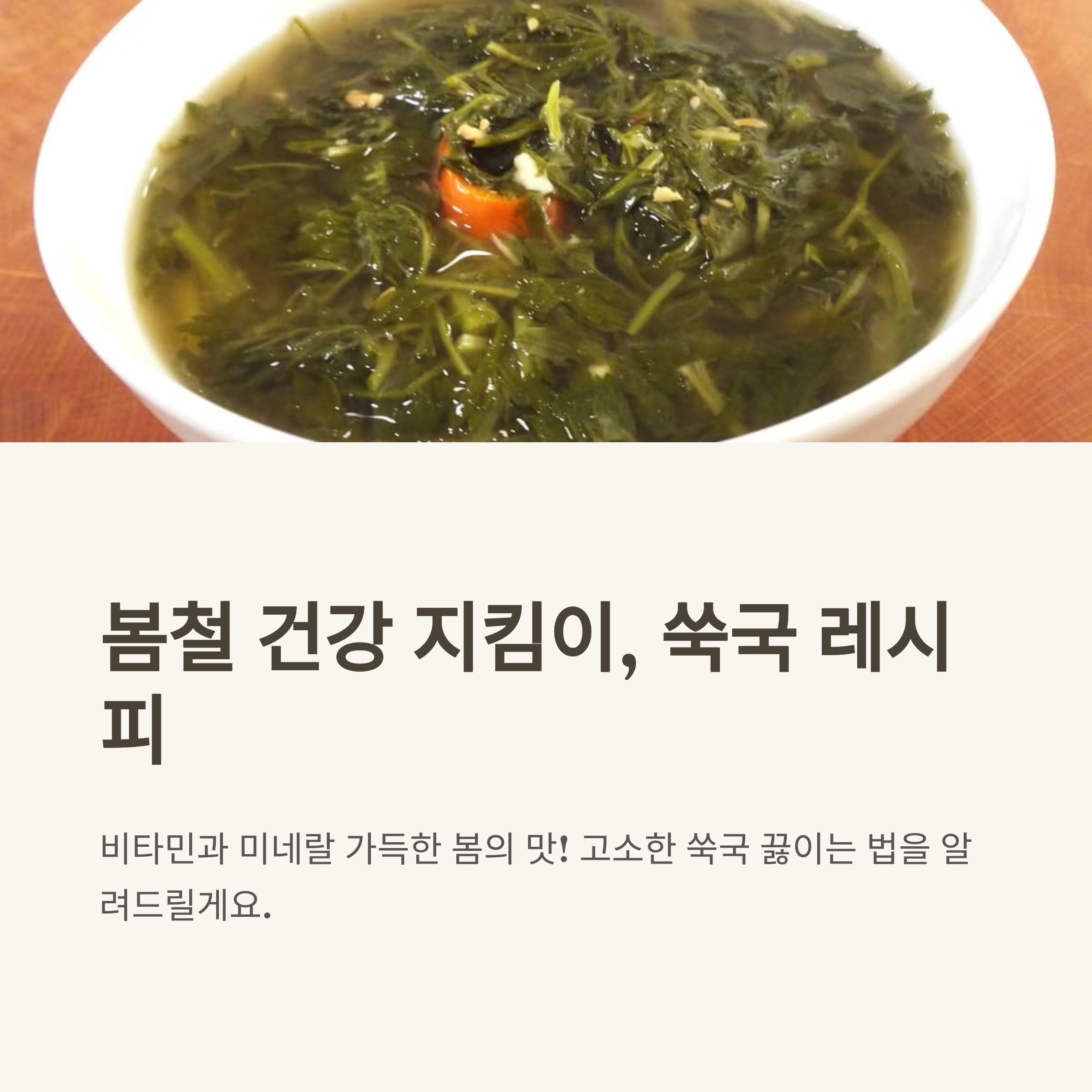 이 과정으로 **쑥국 맛있게 끓이는 법**을 완벽히 구현할 수 있어요!