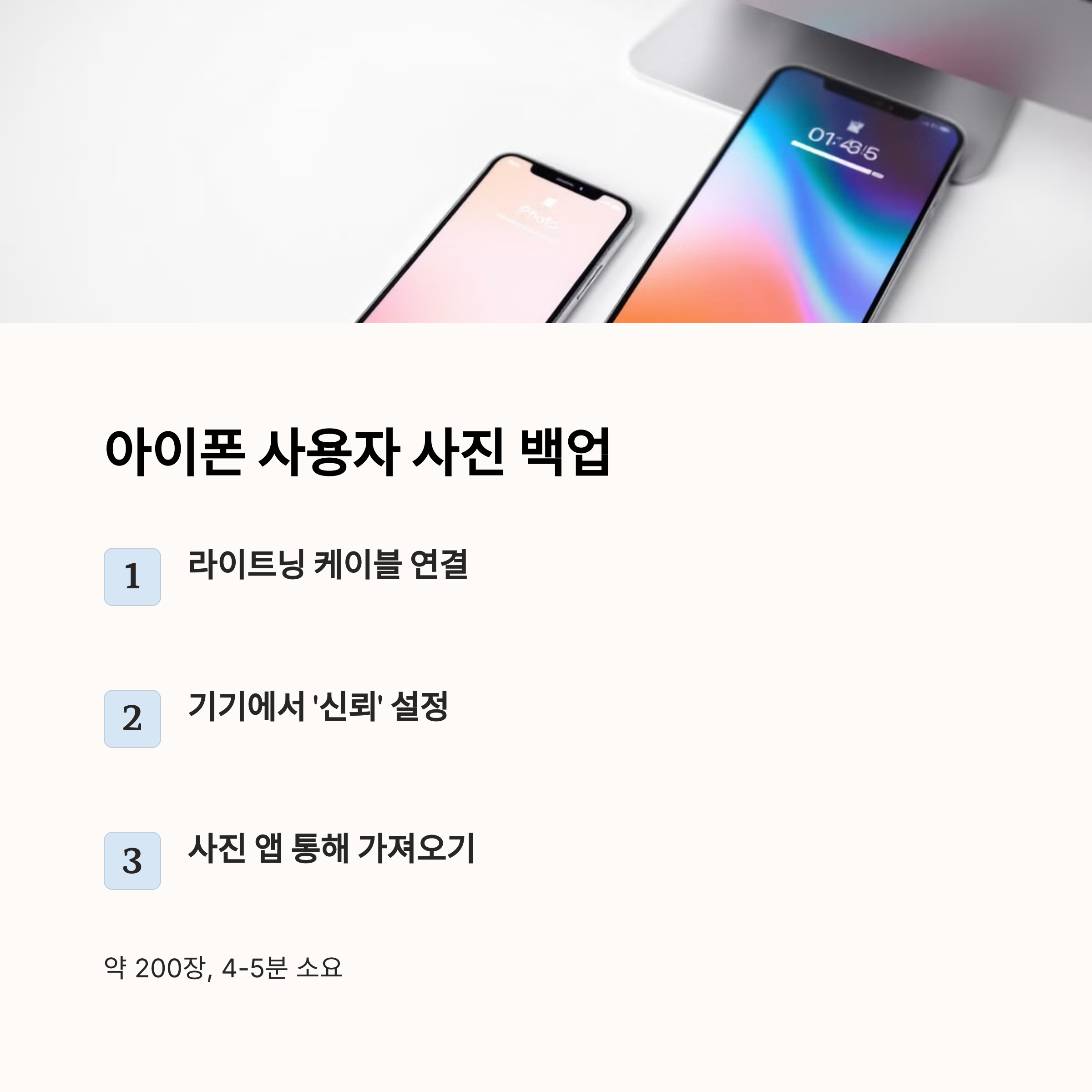 USB 2.0 기준 200장(1GB)에 4~5분. **휴대폰 사진 USB로 옮기는 방법**은 아이폰에서도 간단하죠! 🥕