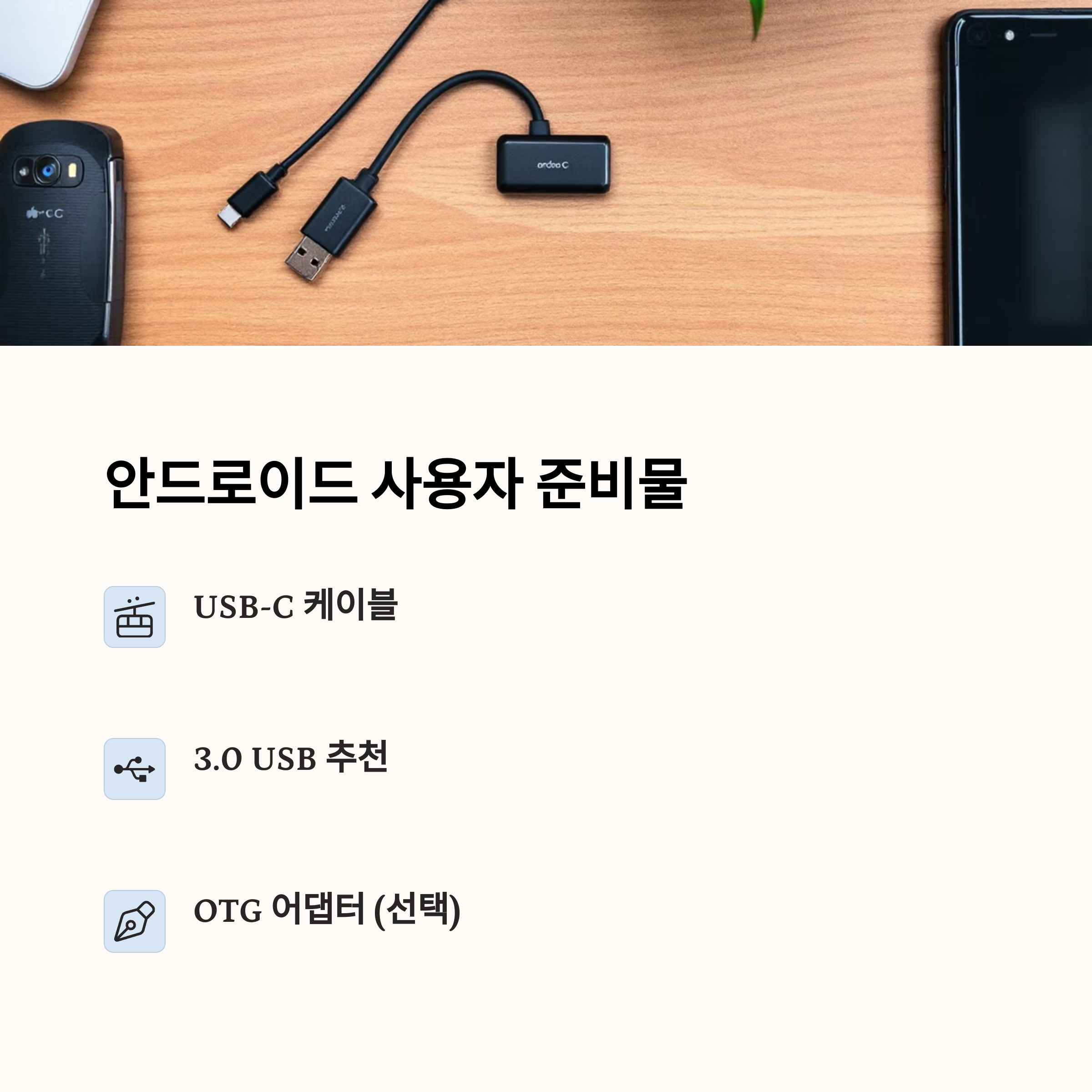 휴대폰 사진 USB로 옮기기 준비물