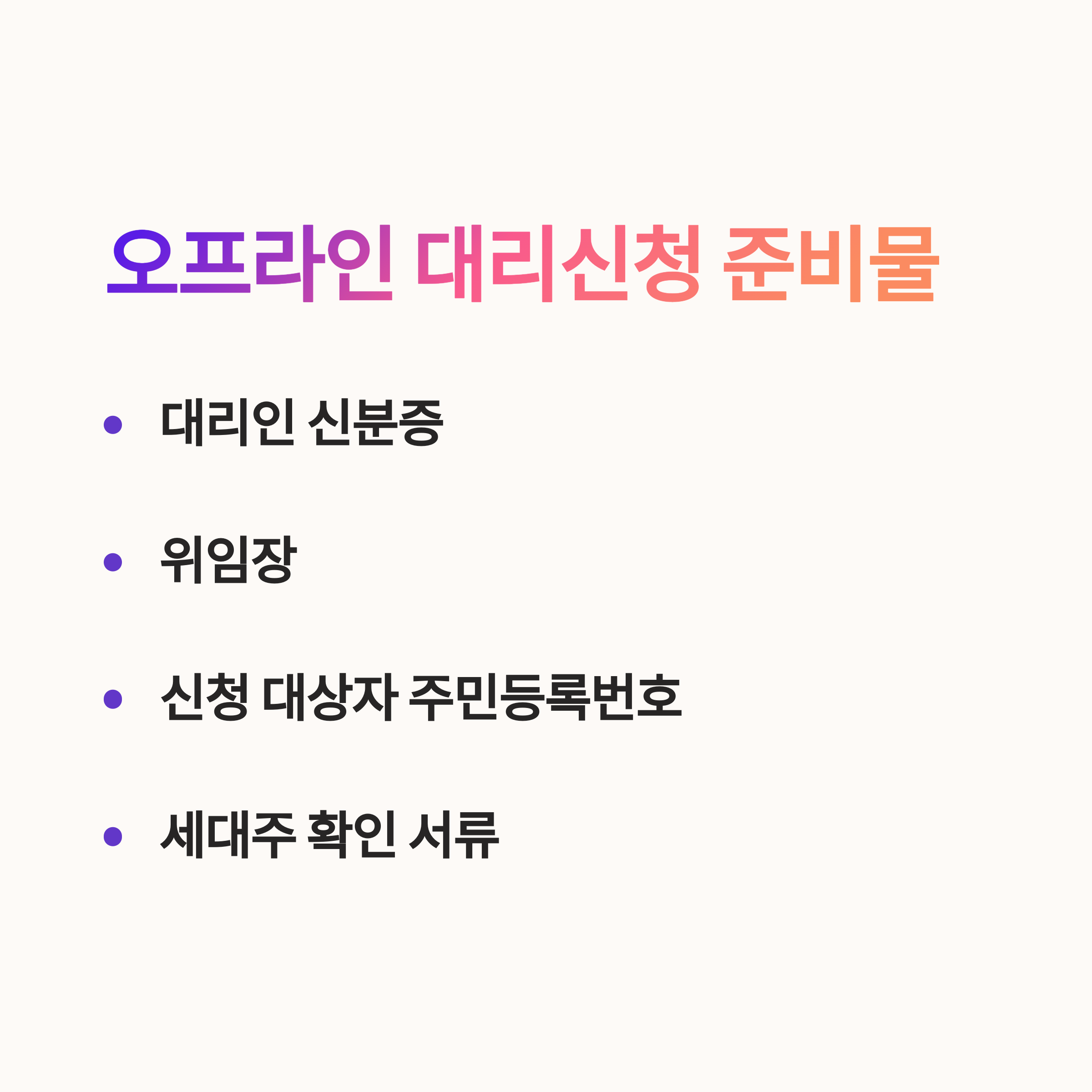 - 대리인의 신분증 - 위임장 (정부24 또는 주민센터에서 제공)