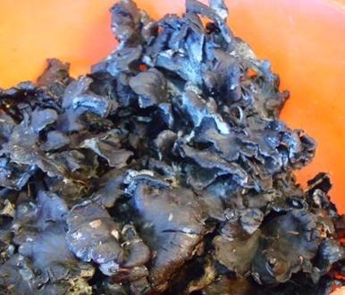 잎새버섯과 비슷한 모양이며 검은 색을 띄는 특징이 있다