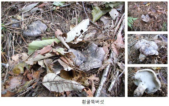 송이버섯 끝물 무렵부터 발생하는 흰굴뚝버섯은 굽두디기, 굽더더기, 국디디기 등의 이름으로도 불리고 있다.