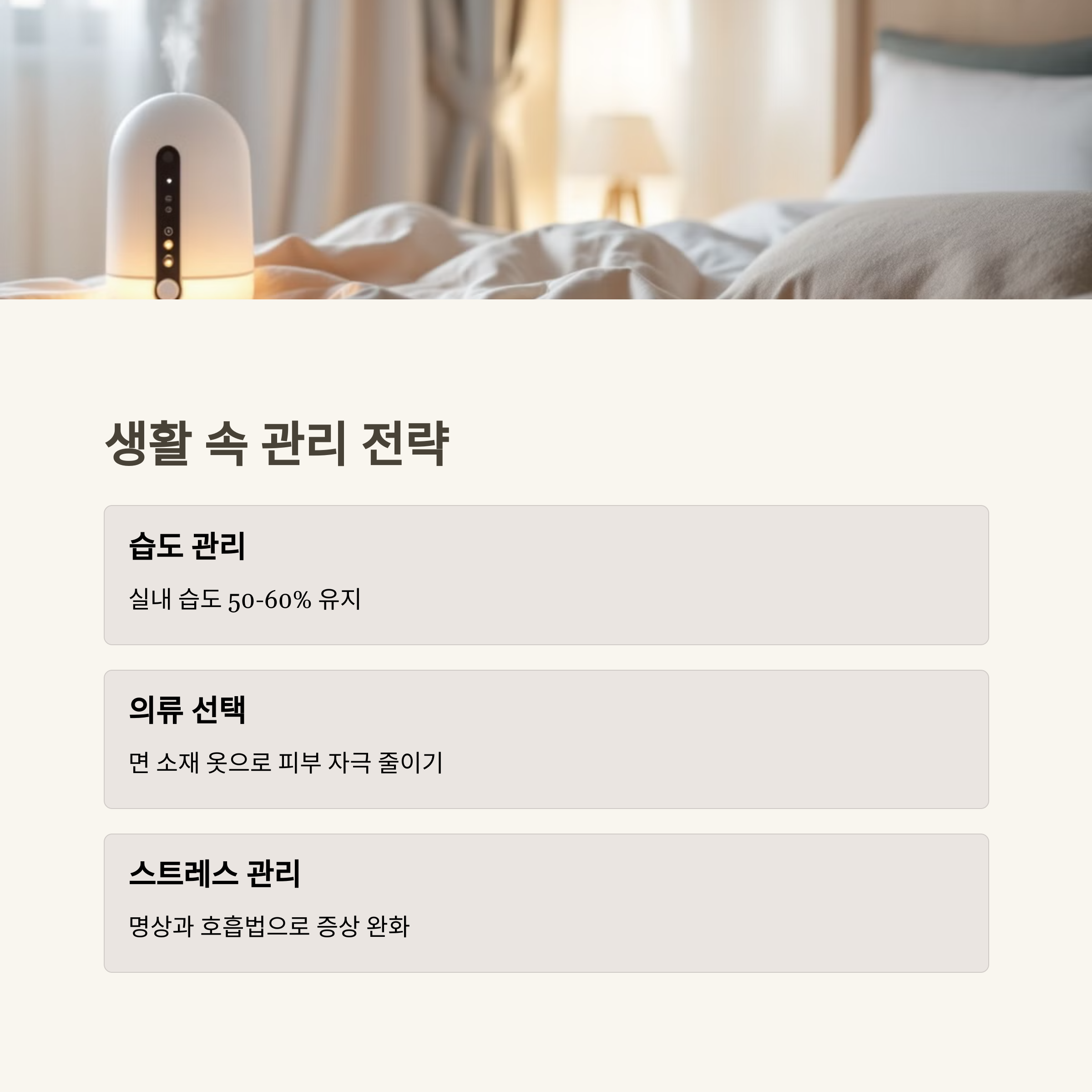 아토피 가려움증 해소방법은 약물뿐 아니라 생활 습관도 중요해요. 몇 가지 실천 가능한 팁을 드릴게요: