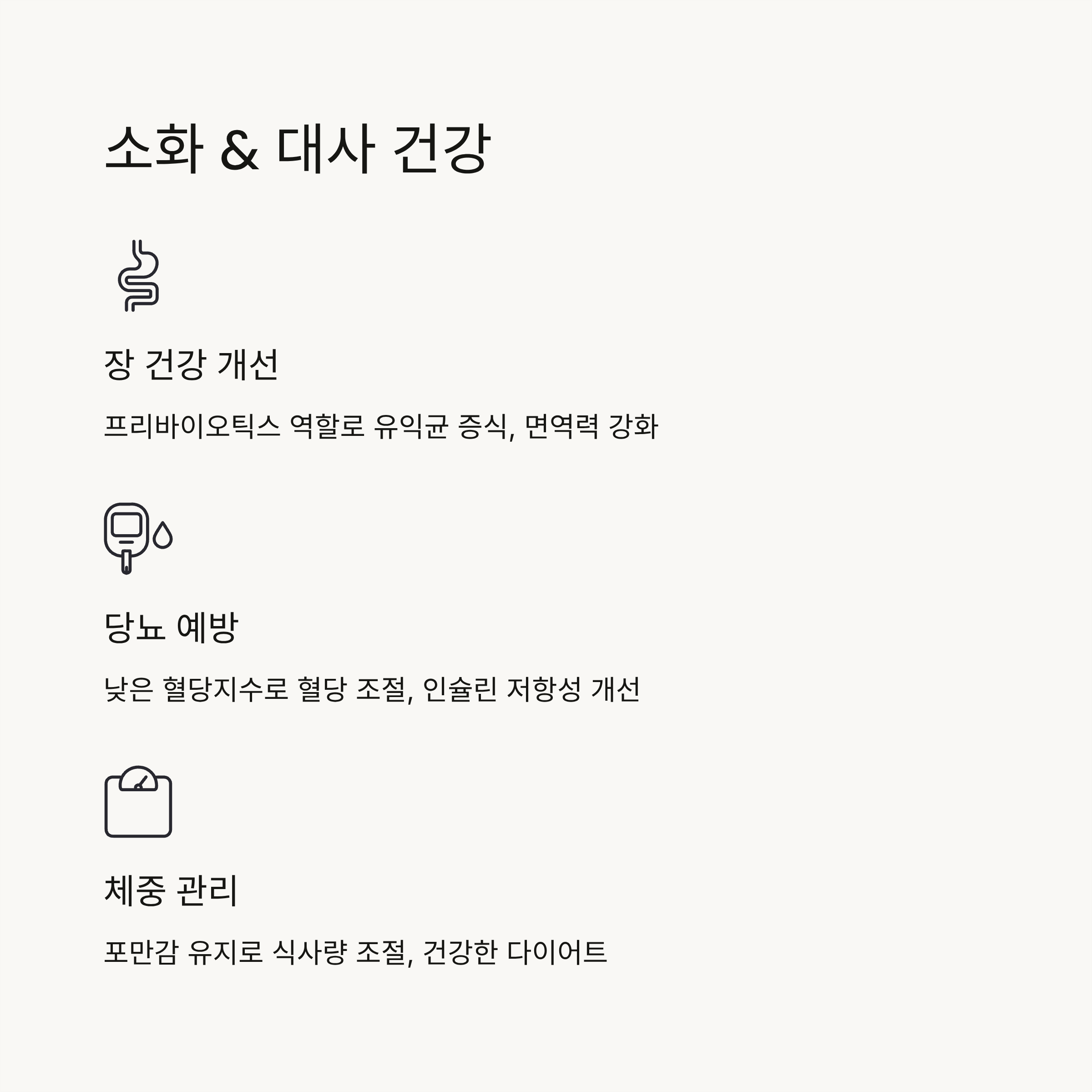 또한, 체내 염증 반응을 억제하여 만성 염증으로 인한 각종 질환 예방에 도움을 줄 수 있습니다.