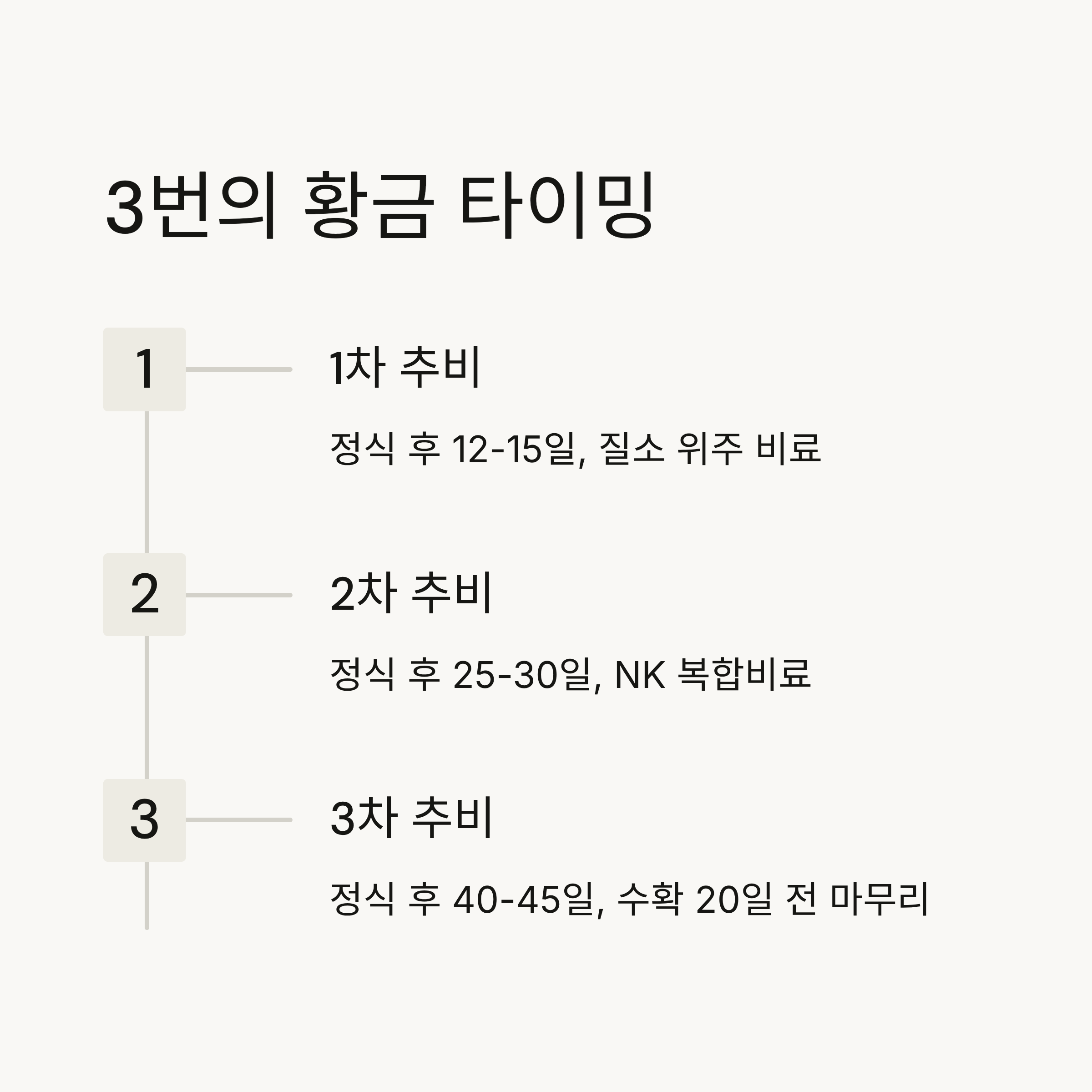 3차 추비 시기: 2차 추비 후 15일 경 (정식 후 40~45일)
