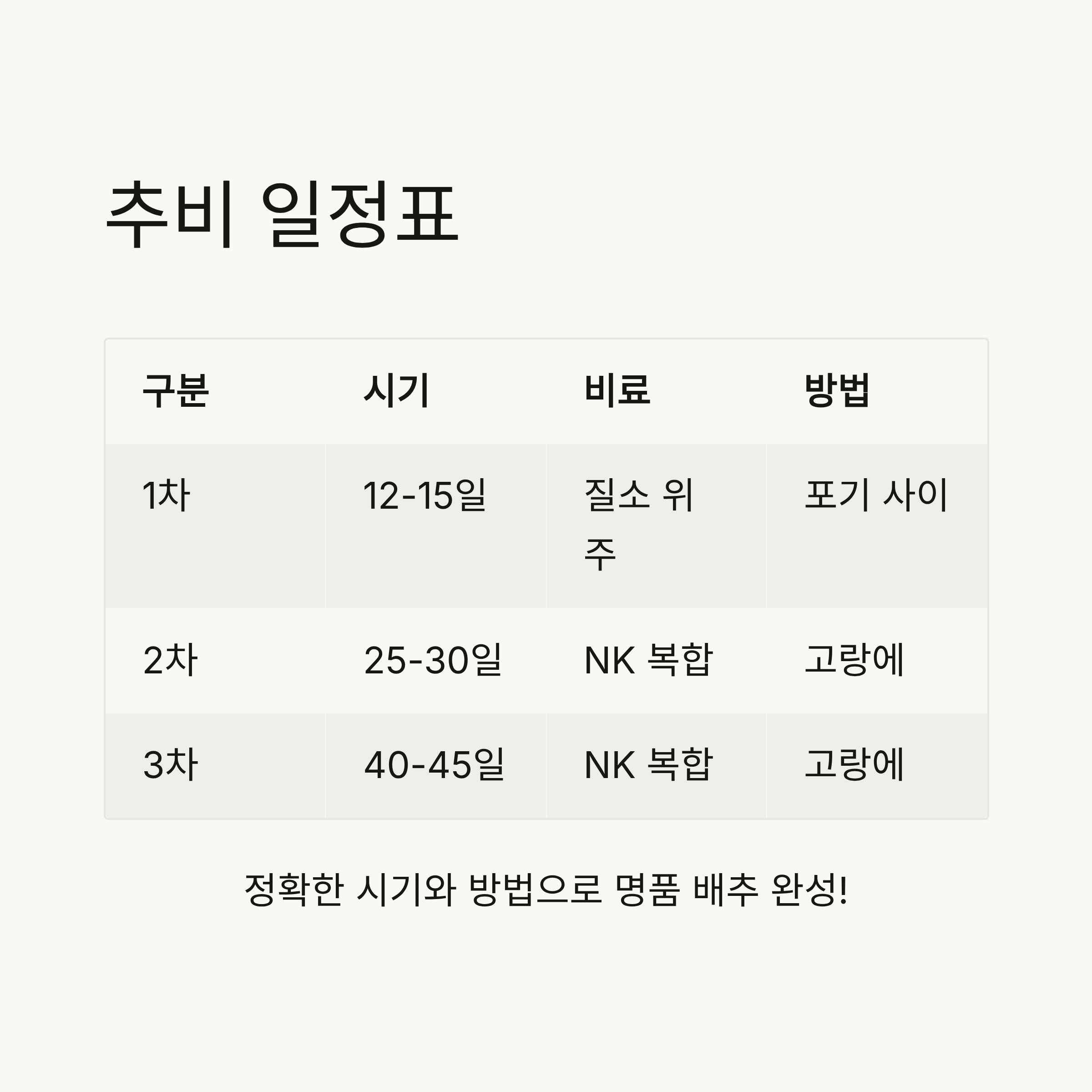 | 📊 구분 | 추비 시기 | 추천 비료 | 주는 방법 |