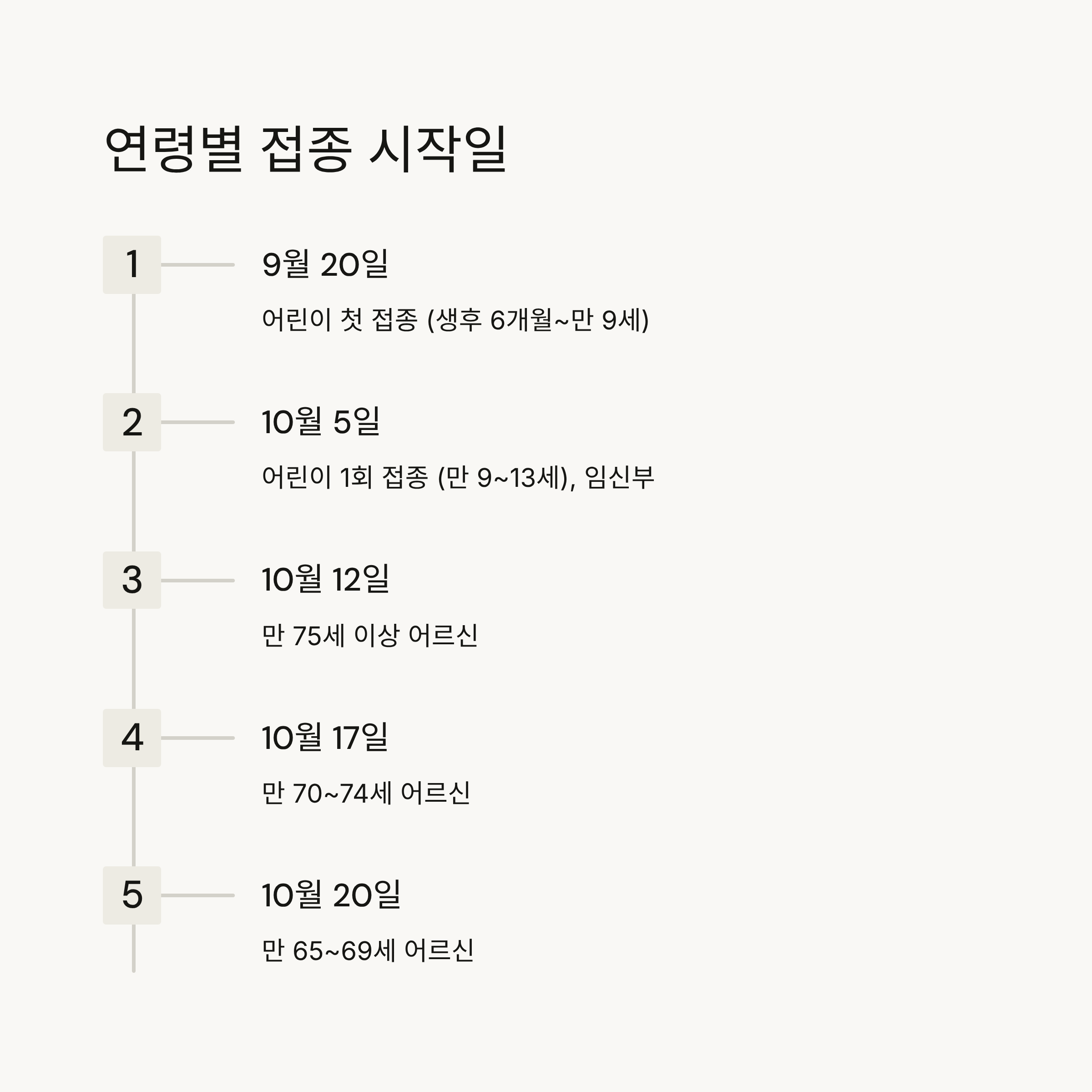 * 위 날짜는 일반적인 일정이며, 실제 시작일은 질병관리청의 공식 발표에 따라 약간의 변동이 있을 수 있습니다.