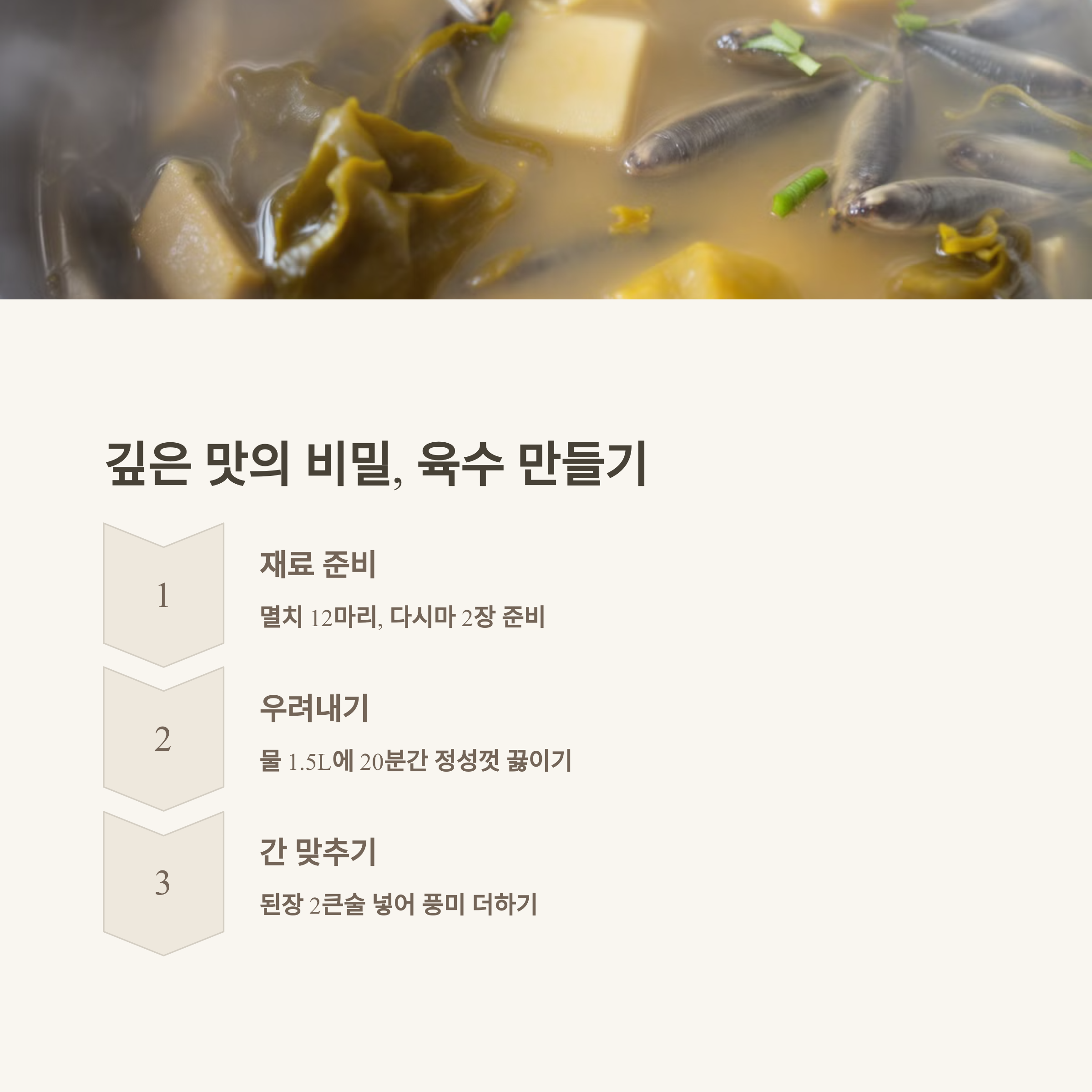 3. 멸치를 미리 살짝 볶으면 비린내가 줄어들고 감칠맛이 강해진답니다.