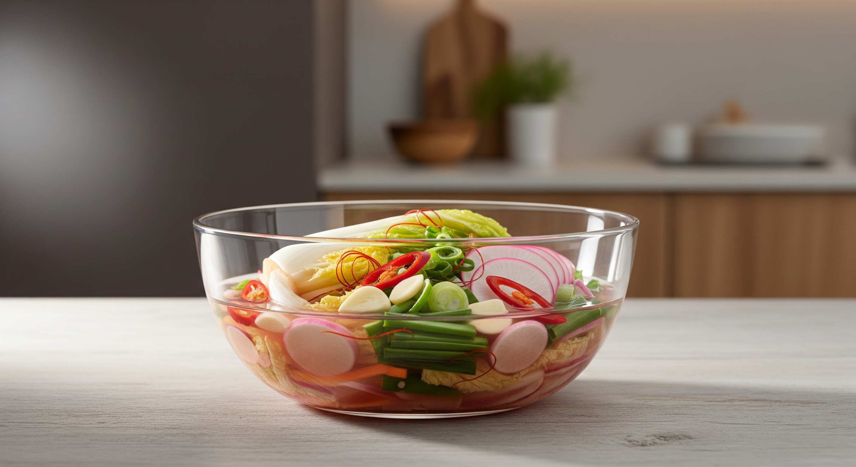 성공적인 물김치를 위한 첫 번째 단계는 바로 '절이기'입니다. 채소를 소금에 절이면 불필요한 수분이 빠져나가 식감이 더욱 아삭해지고, 김치가 무르지 않고 오랫동안 보관할 수 있습니다. 이것이 바로 물김치 맛있게 담그는법의 기초 공사라 할 수 있죠.