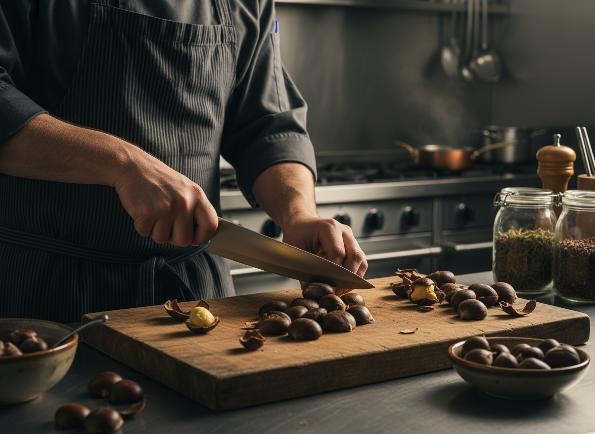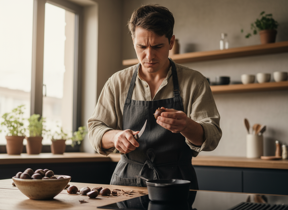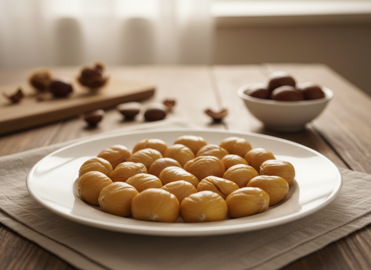 요리에 사용하기 위해 생밤 껍질을 벗겨야 할 때는 조금 다른 접근이 필요합니다. 특히 떫은맛의 원인인 속껍질(율피)까지 깔끔하게 제거하는 것이 관건이죠. 이럴 때는 뜨거운 물에 살짝 불리는 방법이 효과적입니다.